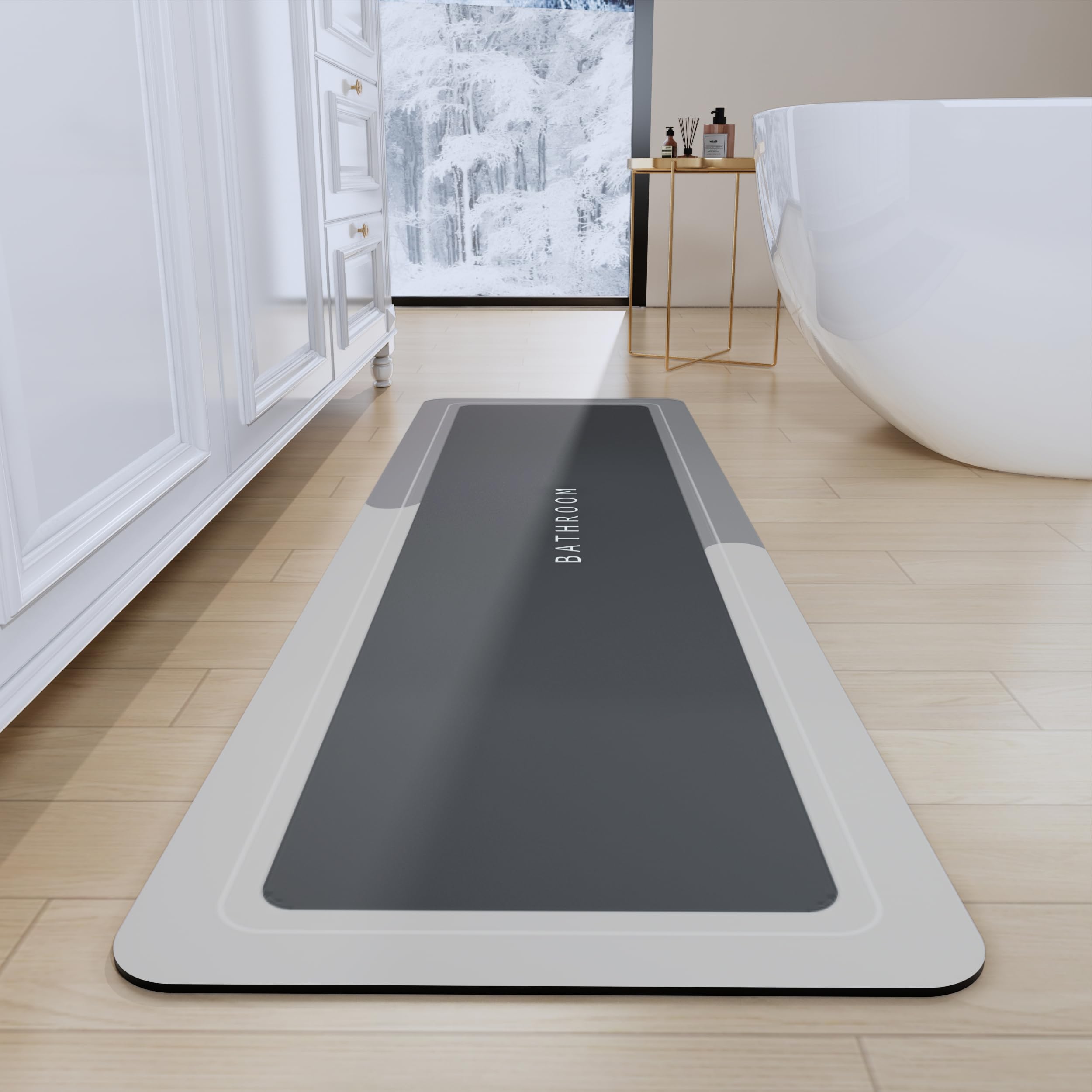 【Super Absorbent & Quick Dry】This is a soft diatomaceous earth bath mat for bathroom with advanced nano technology. When you come out of the bath or shower room, our quick dry mats can absorb dripping water from the wet feet within 1 second. After you stepping out, watermarks will disappear within few minutes, as if it had never been wet. 【Non-Slip Backing & No Risk of Tripping】The super absorbent bath mat is anti-slip, rubber bottom of the bath rugs helps to increase the friction with the ground, it can grip on wet and smooth floor tightly. This rubber backed bathroom mat minimizes the risk of slipping in children and the elderly. 【High Quality & No shedding】: Our super absorbent bathroom mat is made of technical velvet, which surface is very soft and smooth. Unlike traditional chenille rugs for bathroom, our bathroom floor mat is more durable and will not have problems of shedding and fading. 【Dirt Resistant & Easy to Clean】: The smooth surface design helps to resist dirt and hair. Therefore, you don’t need to dry or clean the washable shower mat every day. If you want to clean it after long-time use, simply wipe the washable bathroom mat with a wet cloth, or rinse it with shower nozzle, which can make the bath rug looks as good as new . 【Multiple-Purpose】: It's more than a mat for bathroom. You can use it wherever it is easy to get wet or wherever you want to add warmth to your feet. As thin bathroom mats fit under door, it can be laundry room mat, kitchen mat, in front of sink mat, pet feeding mat or desk mat etc. And fashionable and simple colors and patterns can be matched with any room. The bathroom mat comes in a variety of colors and sizes, you can put it in the kitchen, bathtub, shower room and other places that are easy to get we.