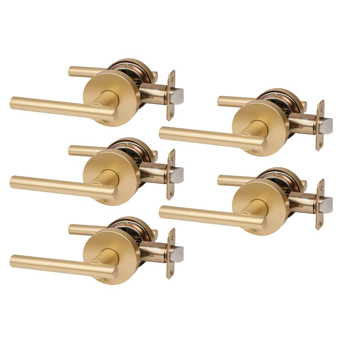 Designers Impressions Kain Design Satin Brass Privacy Euro Door Lever Hardware (Bed and Bath), 5 Pack