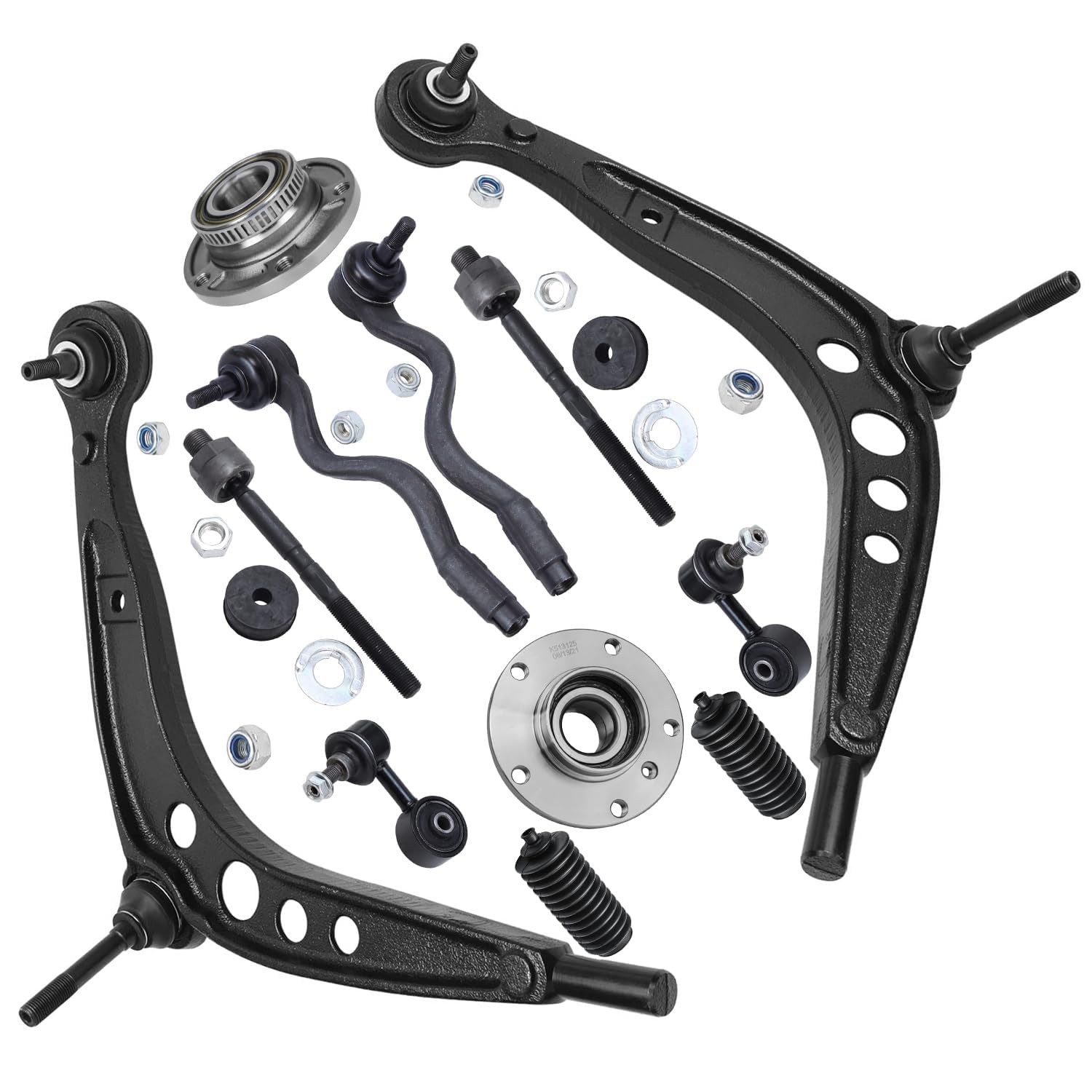 Fits: Specific Models - Check Fitment Chart and Product Description for Accurate Information Kit Includes: (2) Front Lower Control Arm w/ Ball Joints + (2) Front Wheel Hub & Bearing + (2) Front Sway Bar End Links + (2) Front Outer Tie Rod Ends + (2) Front Inner Tie Rod Ends + (2) Boots Detroit Axle Suspension components are ready to meet the rigorous demands of today’s foreign and domestic passenger cars, trucks and SUVs Undergo impact, wear, and fatigue testing to help ensure quality and durability 10-Year Warranty