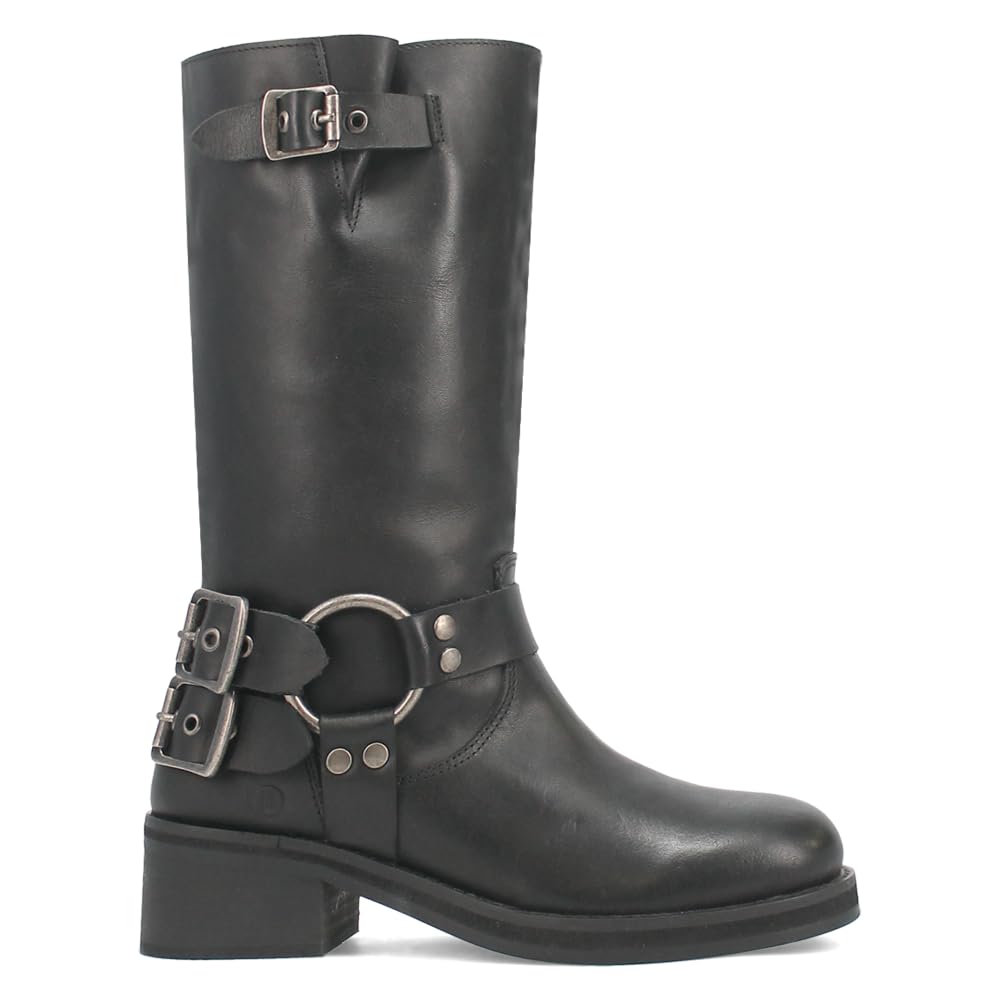 Dingo Womens Harlee Motorcycle Casual Boots Mid Calf Mid Heel 2-3" - Black
