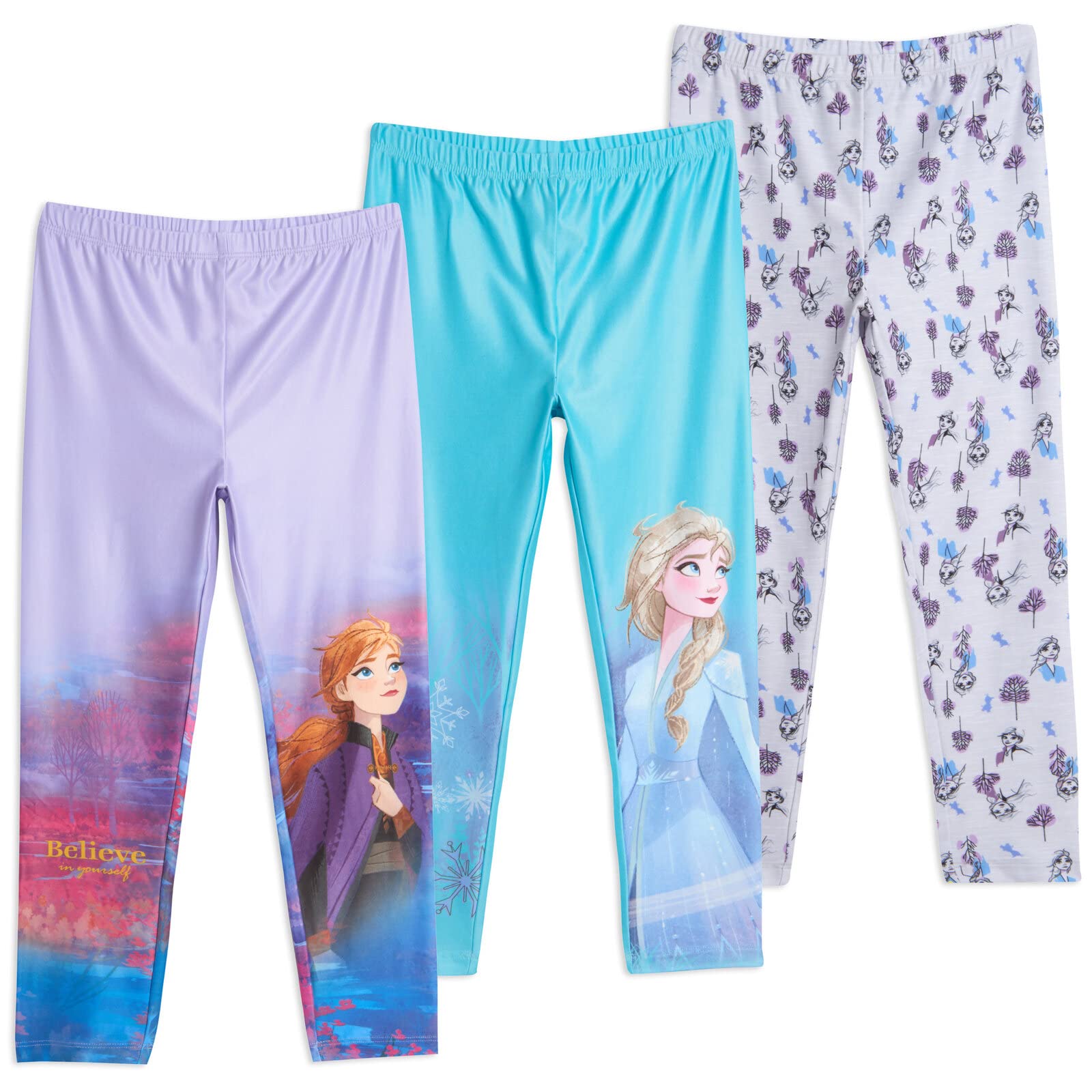 Officially licensed Disney Frozen toddler girls cute and stylish leggings Grey leggings features all-over print of Queen Elsa and Olaf; Purple leggings feature screen print design of Princess Anna with the text "Believe in yourself"; Blue leggings feature adorable Queen Elsa graphic Elastic waist for better fit Children's activewear pants made from soft clothing material that is safe for kid's skin; apparel with a comfortable fit that your child can easily get dressed in every morning Perfect for pajamas for sleeping, birthday gift, every day wear, Christmas holiday gift, back to school outfit and outdoor play Explore the kingdom of Arendelle with the magical characters of Frozen! Queen Elsa, Princess Anna, Kristoff, Olaf and Sven need all the help they can get to run the kingdom, control Elsa’s wintry elemental powers, and keep the peace with the Northuldra of the Enchanted Forest. Get your little one ready for the storybook, fairy-tale adventure of a lifetime with this Disney Frozen Leggings. Your child will look so adorable in this cute and stylish leggings featuring their favorite animated movie and short film characters, they will always love wearing it.