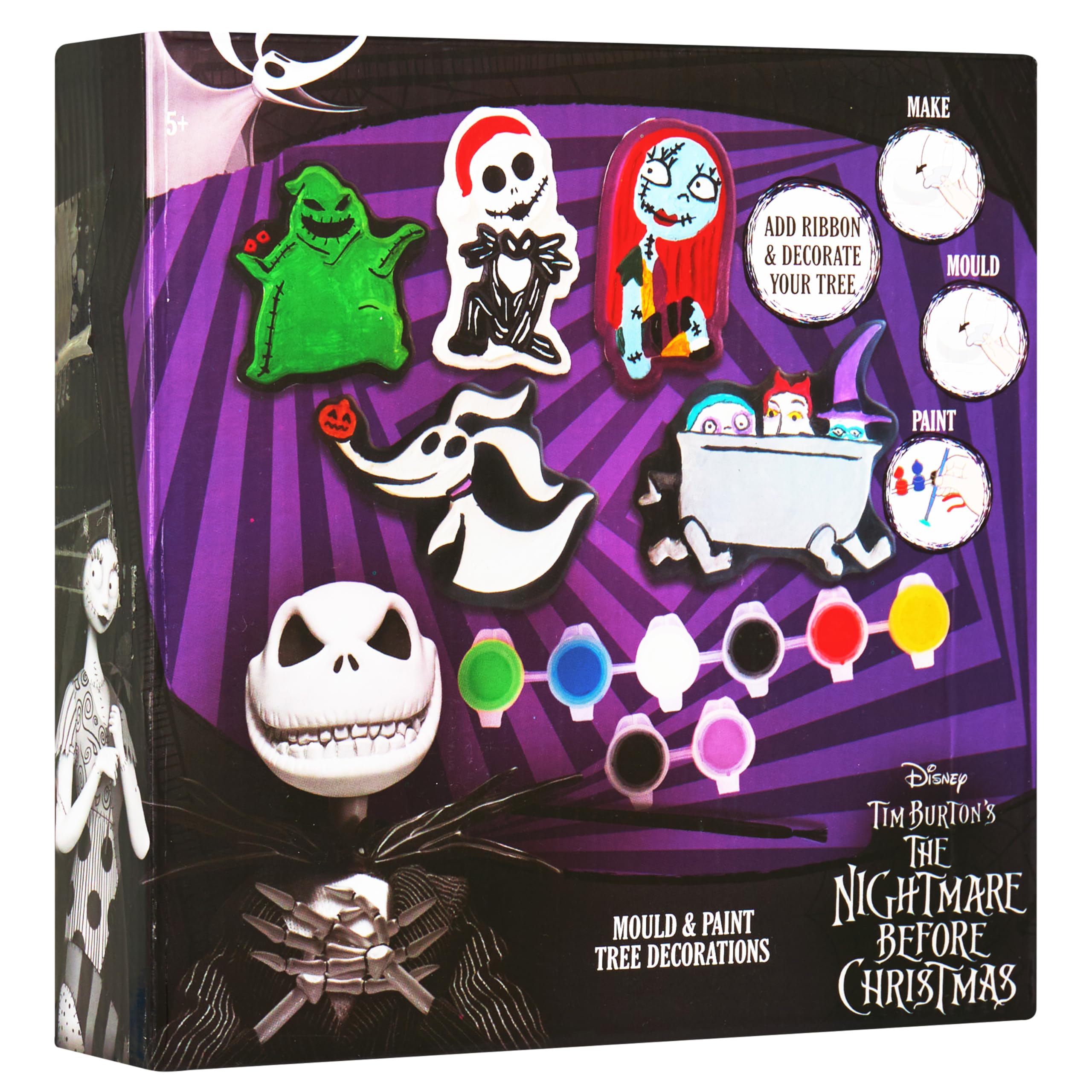 Everything You Need Included: This kit contains 5 character molds, 2 packs of dry mix, 8 paint pots, a brush, ribbons, and instructions so kids can create and decorate fun ornaments from start to finish Create Holiday Magic: Kids can craft five decorations using included molds, paint, and more, adding hands-on fun and creativity to holiday craft sessions, playdates, or festive afternoons Hands-On Creative Time: This activity kit supports imagination, painting, and focus for kids who enjoy art, painting kits, or craft sets during holidays and school breaks Display Ready Decorations: Each finished ornament dries with a smooth matte finish and includes a hanging ribbon so kids can decorate the Christmas tree or use them as handmade gifts for friends and family Gift for Creative Kids: This painting kit is designed for kids ages 5 and up who enjoy Stitch gifts, arts and crafts sets, kids painting sets, Christmas crafts, ornament kits, or gifts for girls and boys Bring holiday creativity to life with this Disney DIY mold and paint Christmas ornament kit designed for kids ages 5 and up. Each set includes five character-themed molds, letting children create decorations featuring Stitch in festive poses or Nightmare Before Christmas favorites like Jack Skellington, Sally, Zero, Oogie Boogie, and more. Kids can mix, pour it into the plastic trays, let it set, then paint each design using the included color palette and soft brush. This hands-on art set contains everything needed to complete the activity from start to finish. It comes with 8 acrylic paint pots and a soft synthetic brush for smooth painting. Each ornament can be finished with one of the 5 included polyester ribbons, depending on the design, so kids can display them on the Christmas tree or give them as handmade holiday gifts. An easy-to-follow instruction sheet walks them through each step of the process. Whether you're searching for Stitch gifts, Jack Skellington gifts, or seasonal kids crafts, this paint set encourages creativity and focus. Kids can enjoy a screen-free experience while developing fine motor skills and self-expression. Ideal for crafting time during winter break, holiday gift ideas, or classroom activities, this ornament kit helps children explore painting while creating decorations they can display or share.