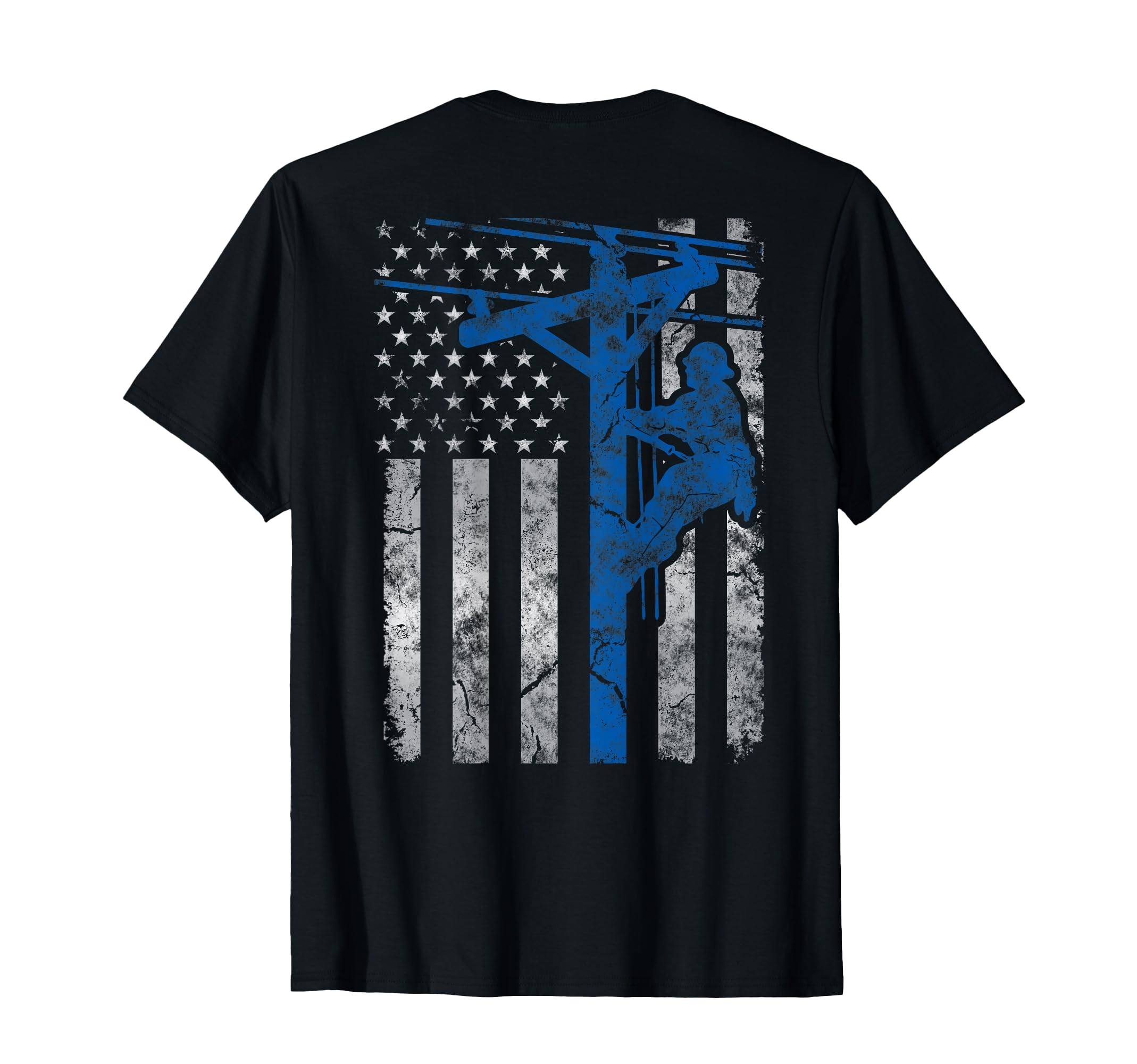 Patriotic Public Service Support design. Distressed Vintage Retro Patriot Thin Blue Line Lineman American Flag Tee Clothes gift for Lineman Men, Women, Grandpa, Father. Thin Blue Line Lineman American Flag Tee Clothes gift for American Lineman Day, 4th of July, Independence Day, Memorial Day, Veterans, Thanksgiving, Halloween, Christmas. Lightweight, Classic fit, Double-needle sleeve and bottom hem