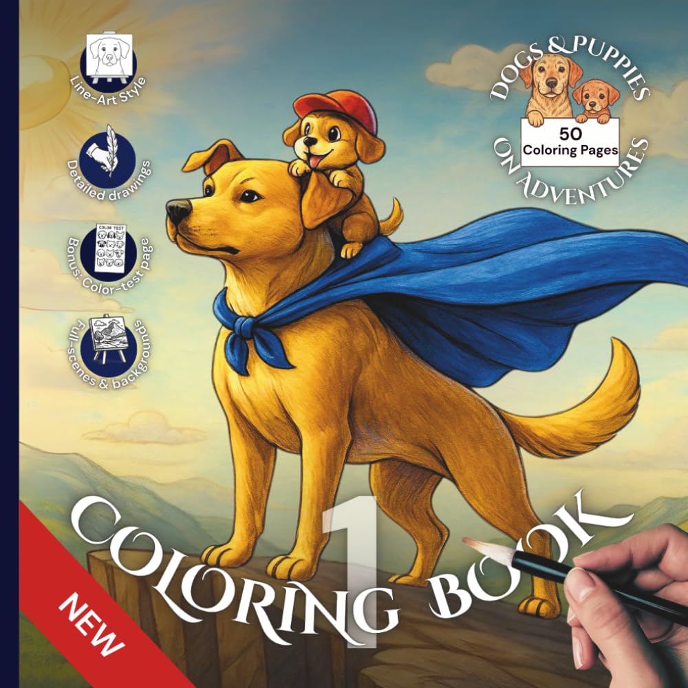 NEW PUBLICATION! Promotion runs until November 1st 2025! Normal price: $10.99 Welcome to an amazing journey into the world of adventurous dogs & puppies in a coloring book for both kids and adults! These 50 easy-to-color illustrations in a detailed line-art style with babkground are such a fun and creative way to relax by adventuring alongside dogs & puppies as they explore and discover barns, cities, forests, rivers, caves and meadows—ready for your splash of colour! You will be able to explore a variety of coloring schemes or sharing with friends and siblings. This coloring book is ideal for children and teenagers who have a fondness for dogs or puppies , as well as for adults seeking mindful, stress-relieving creativity. Each illustration is detailed enough for adults yet friendly for younger colorists. Why you'll love this coloring book: 50 pages to color : 25 adventure scenes , redrawn in two detailed and simple line-art styles so you can test-drive different colour palettes. - Hours of fun adventures, stress-relief coloring, creativity, and relaxation for the whole family – your two children can share one book. - Single-sided pages printed on bright white paper to prevent bleed-through (if using markers, please put a protective sheet behind the page you are coloring ) - The illustrations strike a balance between a realistic style and a more family-orientated approach, all in line-art . - Easy to color varying between thick and thin lines and sized for markers, gel pens, crayons or pencils. - 8.5 x 8.5 inches , (21,59 x 21,59 cm) very satisfying square design Click Add to Cart now to start your adventures—or gift it to the colorist fan in your life!