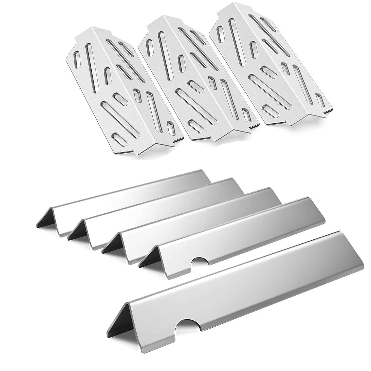 This 8-piece kit is a top-tier choice for Weber genesis 2 grill replacement parts and genesis ii grill replacement parts, including 5 stainless steel flavorizer bars (17⅛"L×3"W×2⅛"H) and 3 heat deflectors (12½"L×4¼"W). It fits Weber Genesis II models like E-315, E-310, E-330, E-335, S-310, S-335, LX S/E-340, replacing Weber 66032, 66795, 66040, 61011001, and more—ideal for restoring your grill’s performance. Crafted from heavy-duty stainless steel, these Weber genesis ii grill parts and Weber genesis 2 parts withstand high heat and resist warping. Perfect as weber genesis 2 gs4 grill parts replacement and weber grill parts genesis ii, they match OEM quality for long-lasting reliability, whether you’re grilling burgers or searing steaks. Installing these genesis ii flavorizer bars and Weber genesis ii flavorizer bars is a breeze—no tools needed! Simply slide them into place, fitting all Genesis II/LX 300 Series models (2017+). Ideal for both DIY enthusiasts and casual grill owners, they quickly revive your Weber genesis 2 setup. Designed as Weber genesis ii parts and Weber genesis ii grill parts, they enhance flavor by vaporizing drippings into smoky goodness while reducing flare-ups. Perfect for Weber genesis e-315 and Weber genesis ii e-315 models, they elevate searing, roasting, and grilling results. These are aftermarket replacements, so please double-check your grill’s model before ordering to ensure compatibility with genesis ii and Weber genesis ii setups. Backed by a 3-month exchange and return policy, your satisfaction is our priority—trust these parts to keep your grill running strong.