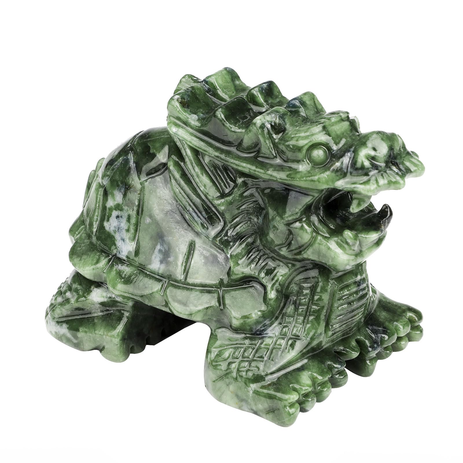 REAL JADE - Each Dragon Turtle statue is individually hand-carved from natural jade so each one is completely unique in color and pattern due to the natural stone and the hand carving process. DRAGON TURTLE-a mythical creature blending the majesty of the dragon with the longevity of the turtle, symbolizes both great wisdom and the enduring power of time, representing a balance between celestial grace and earthly resilience. DECORATION AND COLLECTION - Animals connect you to the oneness of nature and existence and can serve as spiritual guides into universal realms and shamanic journeys. Each animal has a specific meaning and symbolism, often varying by culture and beliefs. They bring positive life force and energy. BRING LUCK FENG SHUI - crystals and gemstones are used in Feng Shui in a variety of ways, all with one single goal – to create good Feng Shui energy in your home. This can be achieved by placing certain animals or crystals in specific areas in the house. Makes a wonderful gift! NICE IDEAL - The Turtle figurine can drive the flow of money, so that the cause can be more successful. It will be a very nice surprise for your friends and yourself. gemshan jade Dragon Turtle Figurine Big Animal Statue Decor Healing Reiki Plished Table Ornaments for Home, Office 100% Natural Authentic Real Jade Hand-carved Turtle Figurine The Turtle is a symbol of vigour, vitality, resilience, upward mobility and wisdom, as well as ability, sagacity, talent and having a role to play, perfect for home or office decorations. 1.Multifunctional -Home Decor, Art Exhibition & Paperweight 2.Perfect for Collectible Figurines(Jade Art) 3.Suitable for Multiple Scenarios (Garden,Bookshelf, living room) 4.Makes a Wonderful Gift (Bring luck)