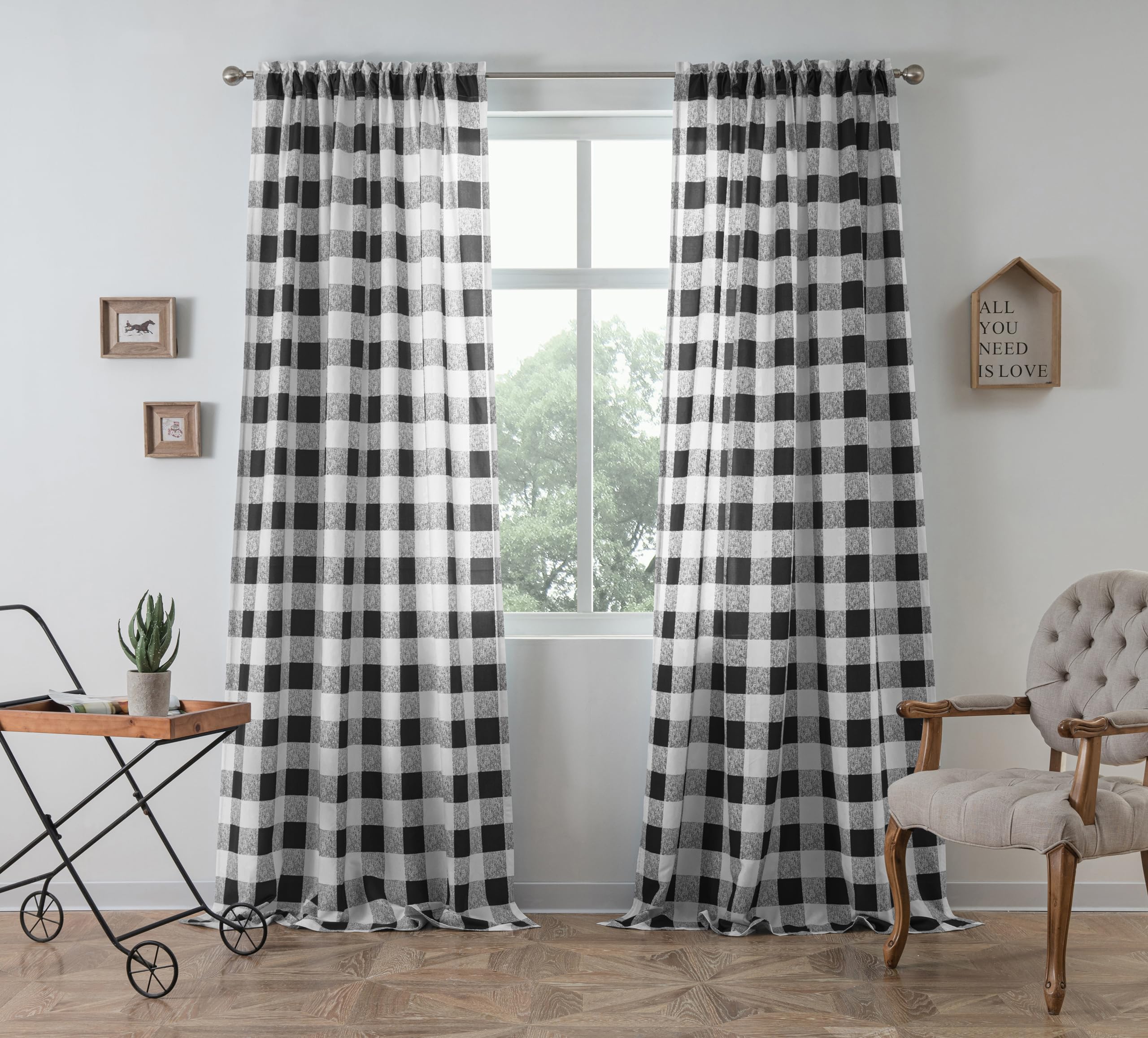Package Includes: Each package includes 4 panels of semi sheer curtain panels, per measures 52" wide and 84" long. With 3 inch rod pocket which fits up to 1.9 inch diameter basic or decorative curtain rods. Premium Material: Our semi sheer is meticulously crafted with high-quality polyester fabric, designed to be durable and easy to clean. The soft and supple semi-sheer fabric has a softly textured look and feel. With its relaxed drape and movement, our bufflalo paid curtains brings an airy softness to balance and accent your décor. Classic Buffalo Check Design: This timeless buffalo check valance brings a touch of classic charm to any room with its iconic black and white plaid print. The graphic check pattern adds a rich, textural vibrancy while coordinating beautifully with both traditional and contemporary spaces, makes a versatile statement above your window whether you favor boho, farmhouse, modern, coastal or other interior looks. Filter the Light: With their breezy semi-sheer style, these checked curtains allow just the right amount of natural light into your home while still maintaining privacy. The classic buffalo check pattern in black and white evokes a charming, laidback feeling. These versatile curtains work beautifully in living rooms, studies, bedrooms, dining spaces, children’s rooms and more, making them an easy choice for any indoor area of your home. Care Instruction: Machine Wash Cold, Gentle Cycle in mesh bag, only non-chlorine bleach when needed, tumble dry low, cool iron if needed. Bring a touch of classic Americana style to your windows with these easygoing buffalo check patterned curtains, artfully crafted from lightweight 100% polyester. Designed with a breezy single layer, the softly filtering semi-sheer fabric sports a timeless medium-scale black and white plaid print, lending your décor a relaxed farmhouse vibe.