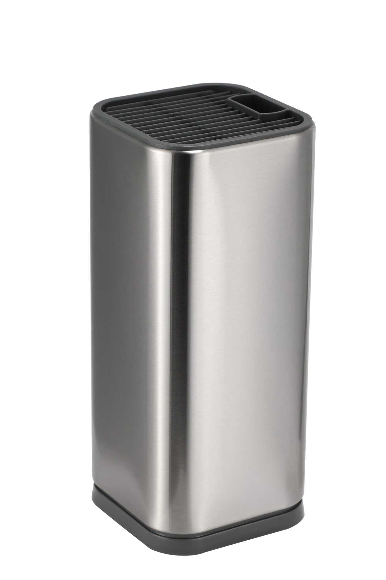 Space-Saving Knife Storage: Our silver stainless steel knife block features a compact design, perfect for kitchen countertops, maximizing your workspace and organizing your cutlery. Universal Knife Compatibility: Fits a variety of knives up to 8.10 inches, from chef’s knives to paring knives, with a dedicated scissor slot for added convenience. Premium Rust-Resistant Stainless Steel: Built with durable, rust-resistant materials, this knife holder guarantees long-lasting performance and adds a modern touch to your kitchen. Sleek Modern Kitchen Organizer: Enhance the look of your kitchen with this stylish and functional knife block that offers both elegance and efficiency for all knife types. Detachable Design for Easy Cleaning & Drainage: This universal knife block features a removable top and drainage holes at the base, ensuring quick water drainage and easy cleaning. Keep your knives and knife block clean and dry effortlessly, promoting a safe and hygienic kitchen environment. Elevate your kitchen organization with our Stainless Steel Universal Knife Block Holder. Meticulously designed to combine functionality with modern aesthetics, this knife block is the perfect addition to any kitchen. Its compact design ensures it doesn't take up unnecessary space, while the universal slots accommodate a wide range of knife sizes and styles. Crafted with premium stainless steel, it promises durability and a timeless look that complements any kitchen decor. The soft, protective slots ensure your knives remain sharp and in pristine condition. Plus, with a stable, non-slip base, you can be confident that your knives are stored securely. Whether you're a professional chef or a home cook, our knife block holder is the ideal solution for keeping your kitchen tools organized and within reach.