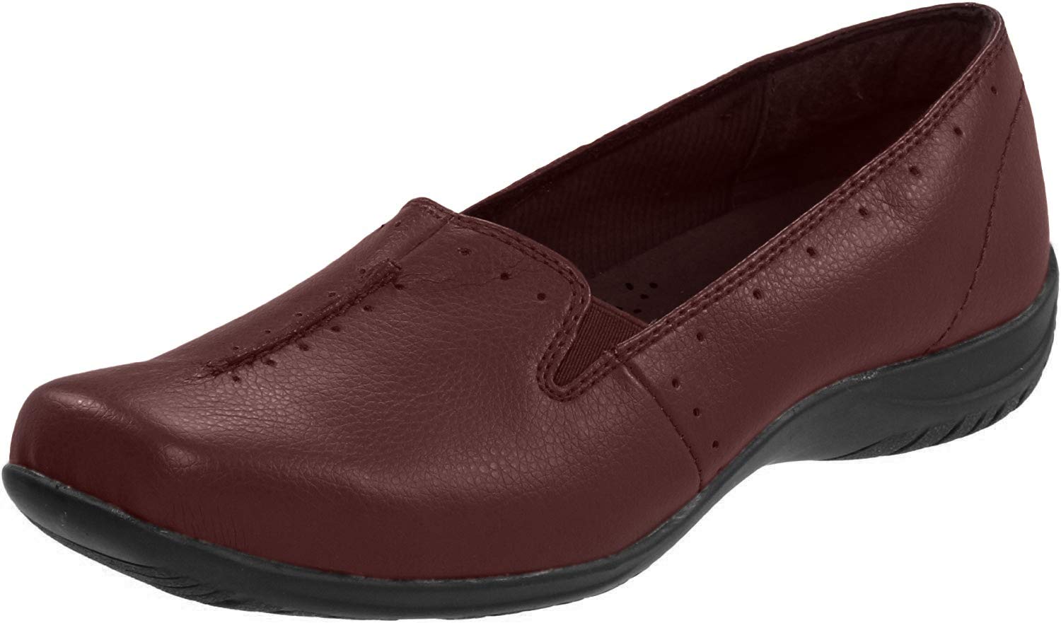 Comfort Wave footbed provides cushioning and superior support from heel to toe. Twin elastic inserts are stretchable to give your feet a comfortable fit. Synthetic leather upper has slip-on styling for an easy on / off. Urethane upper, sueded polyurethane upper lining and sockliner, foam insole, steel shank... Thermoplastic rubber outsole. Heel Height: 1. Care: Spot clean upper with a damp cloth. Ride the wave in every step when you slip on the Easy Street Women Purpose Slip-On Shoe with Comfort Wave technology! This casual slip-on shoe provides amazing support and cushioning from heel to toe thanks to the contoured Comfort Wave footbed for soft cushioned comfort each step. Enjoy and easy on / off with the synthetic leather upper while the stretchable, twin elastic inserts offer a comfortable fit.