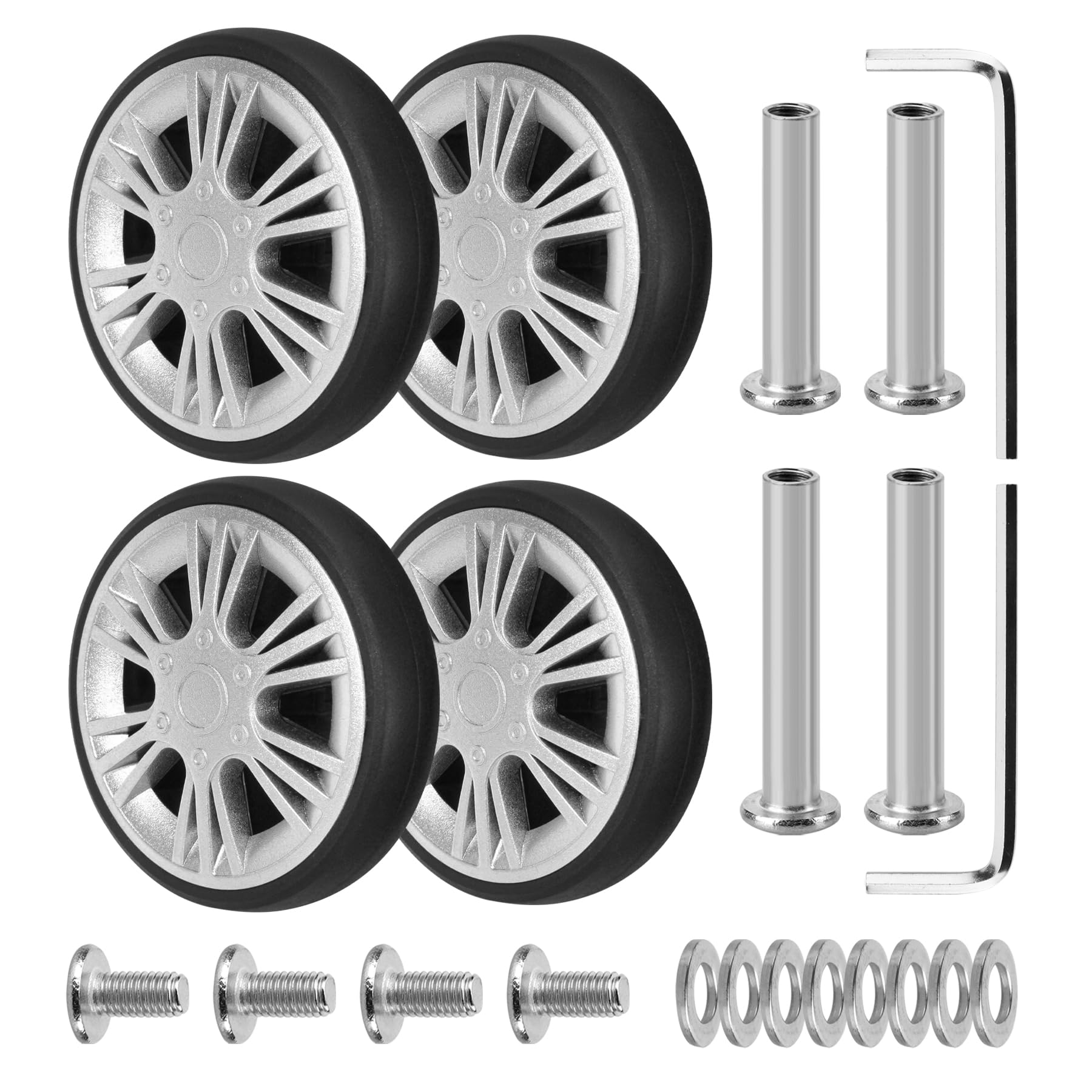 High Quality: The luggage wheels are made of high quality rubber and metal bearing, sturdy and wear-resistant, smooth mute rolling and strong load-bearing. Easy to Install: You just need to remove the original wheel with a hacksaw at the gap, and then install the new replacement wheels with the included accessories. Wide Application: Suitcase wheels replacement is very suitable for repair and DIY, replacing damaged or worn luggage suitcase trolley caster wheels. Size: Wheel Outer Diameter: 55mm (2.17 in), Wheel Width: 11mm (0.43 in); Total Width: 14 mm (0.55 in); Center Bearing Internal Diameter: 6mm (0.24 in); Axles Length: 40mm (1.57 in)/45mm (1.77 in). Please check the size before purchasing. Package Includes: 4 x 55mm luggage replacement wheels; 2 x 40mm wheel axles; 2 x 45mm wheel axles; 4 x Axles screws; 4 x Washers; 2 x Wrenches. Ech.Apr Luggage Suitcase Wheels Replacement Kit Rubber Wheels Swivel Trolley Casters Bearings Repair Tools, A Set of 4