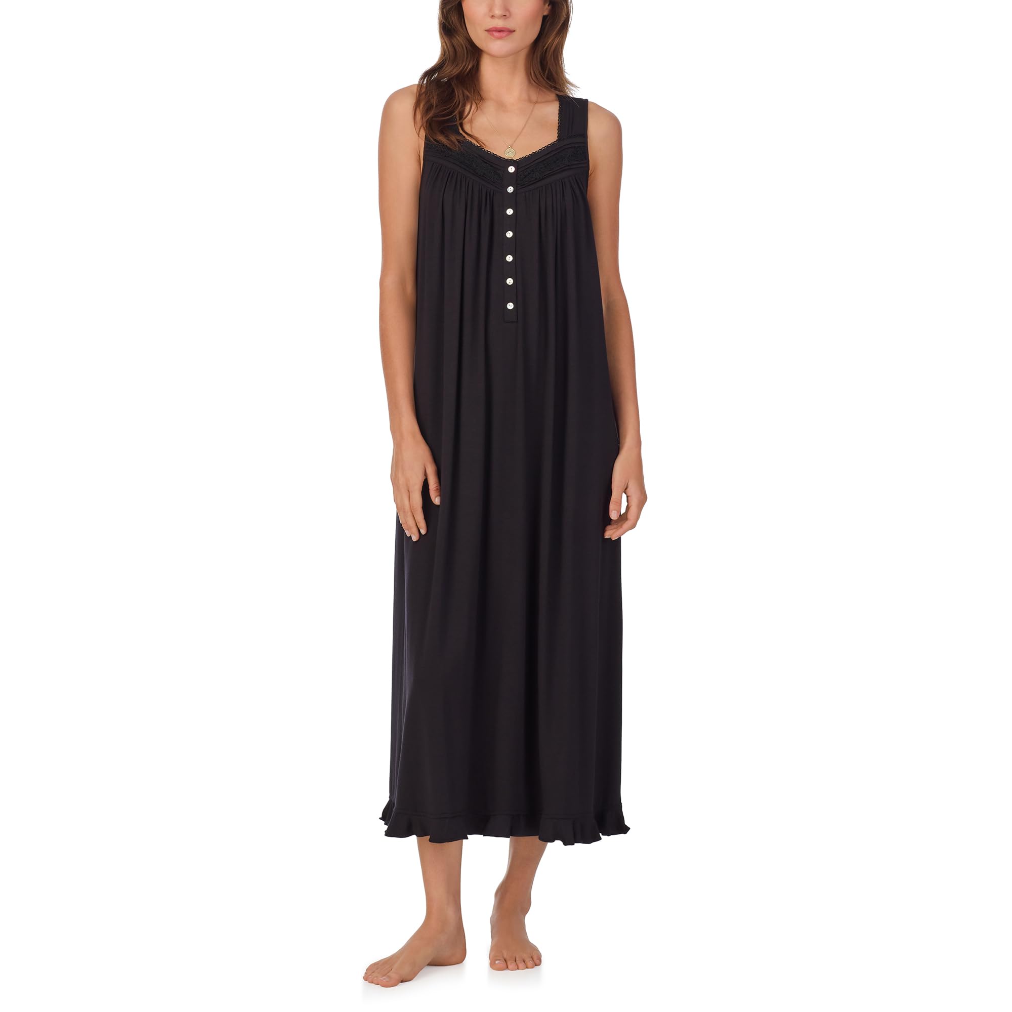 ELEGANT DESIGN: A sleeveless, 50" ballet-length nightgown featuring a sweetheart neckline adorned with delicate pintucks, edge lace, and floral-pattern lace. Finished with a graceful ruffle hemline and a full Akoya shell button placket for a polished, feminine touch. PREMIUM FABRIC: Crafted in our exclusive Tencel Modal jersey knit, this fabric is cool, breathable, and irresistibly soft to the touch. With a lightweight drape and subtle stretch, it offers lasting comfort and easy care for seasonless wear. BEAUTIFULLY VERSATILE: This full-length nightgown transitions effortlessly from restful sleepwear to elegant loungewear or a breezy house dress. The functional button-front design offers easy dressing and nursing access, making it a beautiful and practical wardrobe favorite. MODAL JERSEY KNIT COLLECTION: This collection includes nightgowns, nightshirts, and chemises crafted in silky-soft jersey knit. Designed for refined comfort, each piece blends breathable stretch fabric with delicate lace and feminine silhouettes - ideal for modern ease and quiet luxury. SINCE 1978: Eileen West has been devoted to the art of sleepwear - creating garments born from grace, comfort, and timeless beauty. Inspired by California’s coastal light and wildflower fields, our designs are crafted in natural fabrics with delicate details and feminine silhouettes. Made for life’s quietest moments - rocking newborns to sleep, writing letters at dusk, or lingering over morning coffee - each piece reflects our enduring love for craftsmanship and romance. Experience next-to-skin softness with the Modal Jersey Knit Collection by Eileen West - a romantic sleepwear line designed for ease, elegance, and quiet luxury. Crafted in silky-soft Tencel Modal jersey, each nightgown, nightshirt, and chemise offers a fluid drape and gentle stretch that moves with the body. The fabric’s smooth hand feel and breathable comfort make it a year-round favorite, while delicate details like lace accents, pintucks, and graceful silhouettes add a refined touch. Whether worn to wind down in the evening or savor slow weekend mornings, these pieces are made for softness in every sense. Eileen West sleepwear blends timeless design with modern functionality, and this collection delivers effortless beauty with elevated comfort. Perfect for those seeking luxurious loungewear, silky nightgowns, or breathable alternatives to classic pj sets, the Modal Jersey Knit Collection is ideal for travel, gifting, or everyday indulgence. With subtle stretch and a flattering fit, each garment offers versatility for relaxing at home or packing for a weekend away. Romantic yet understated, it’s the kind of sleepwear that becomes a favorite the moment you slip it on. Since 1978, Eileen West has been dedicated to creating sleep and loungewear that balances beauty with comfort. The Modal Jersey Knit Collection continues that legacy - celebrating the art of rest with pieces that feel as serene as the moments they’re made for.