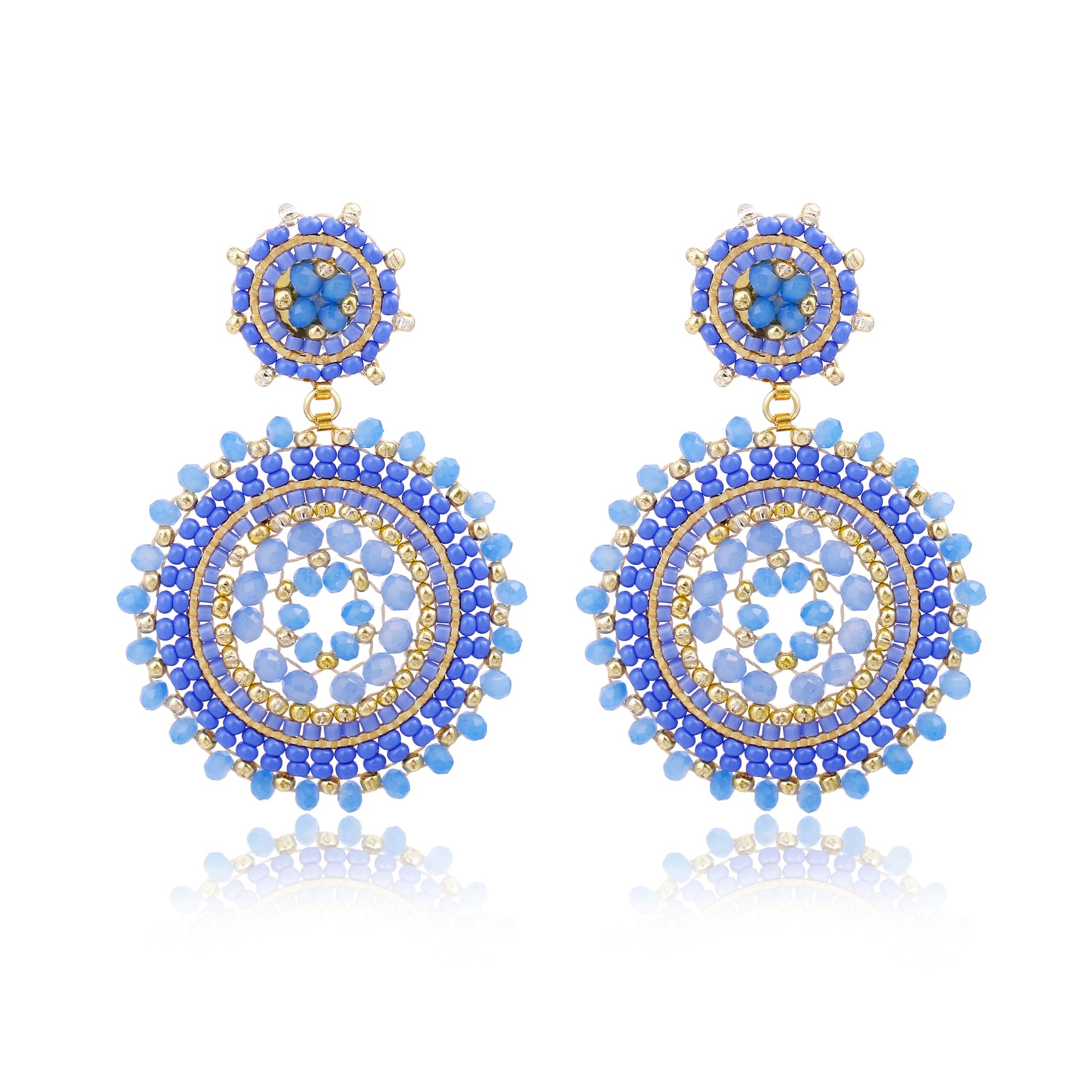 The Earrings Are Hand-Knitted Into Lightweight Designs Of Large And Small Circles, They Can Appear Elegant, Solemn Or Lively. The Earrings Are Lightweight Yet Strong, And You Can Get More Compliments When Worn Daily! Symbolism: Blue Earrings Often Symbolize Calmness, Wisdom, And Loyalty. Therefore, Blue Earrings Are Not Only A Fashion Accessory, But Also Convey The Wearer'S Personality And Emotions. Matching: Blue Earrings Are Easy To Match With Other Colors Of Clothing And Accessories, Especially White, Black And Silver. They Can Add A Touch Of Bright Color To The Overall Look And Enhance The Sense Of Fashion. Various Wearing Occasions: Blue Earrings Are Also Very Popular At Weddings Or Celebrations, Especially When Paired With A Blue-Themed Wedding Or Evening Dress, Which Looks Particularly Coordinated And Elegant. Other Occasions Such As Art Exhibitions, Fashion Shows, Gatherings With Friends, Dinners, Etc. Elegance 11 Design: Creating Meaningful Jewelry That Celebrates Gratitude, Love, And Inspiration, And Sharing Beauty With People Around The World Everyday wear: Blue earrings can add a touch of color to your everyday wear, especially when paired with simple clothing, they can look particularly outstanding.