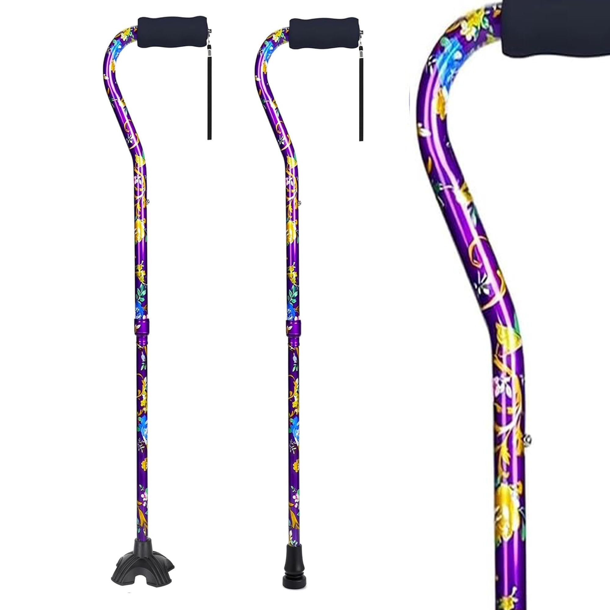 【Canes for Women & Seniors】Elegant Floral Design for Discreet, Confident Support This walking cane for women isn't just a mobility aid; it's a stylish accessory. The beautiful pattern offers elegant support, helping seniors and adults maintain confidence and independence with every step 【Folding Cane】One-Touch Fold & Lightweight Aluminum Frame for Ultimate Portability As a truly portable folding cane, it collapses in seconds and fits in a purse or travel bag. Made of durable, lightweight aluminum, it's easy to carry all day without strain 【Adjustable Cane】Customizable Height (17"-38") & Soft Foam Handle for Perfect Comfort This adjustable cane ensures a perfect fit for users from 5'0" to 6'4". The ergonomic soft foam handle reduces hand fatigue and wrist stress, providing all-day comfort 【Self-Standing Cane】Stable Base & Non-Slip Tip for Maximum Safety and Balance The innovative self-standing cane base keeps it upright and within reach. Paired with a sturdy non-slip rubber tip, it provides reliable stability and balance on tile, wood, or pavement 【Complete Gift Set】Ideal for Enhanced Stability & Independence Ready to gift! Includes Cane, Extra Tip, & Travel Bag. It's the perfect solution for anyone seeking a cane for stability, making it a thoughtful gift for moms and grandmothers