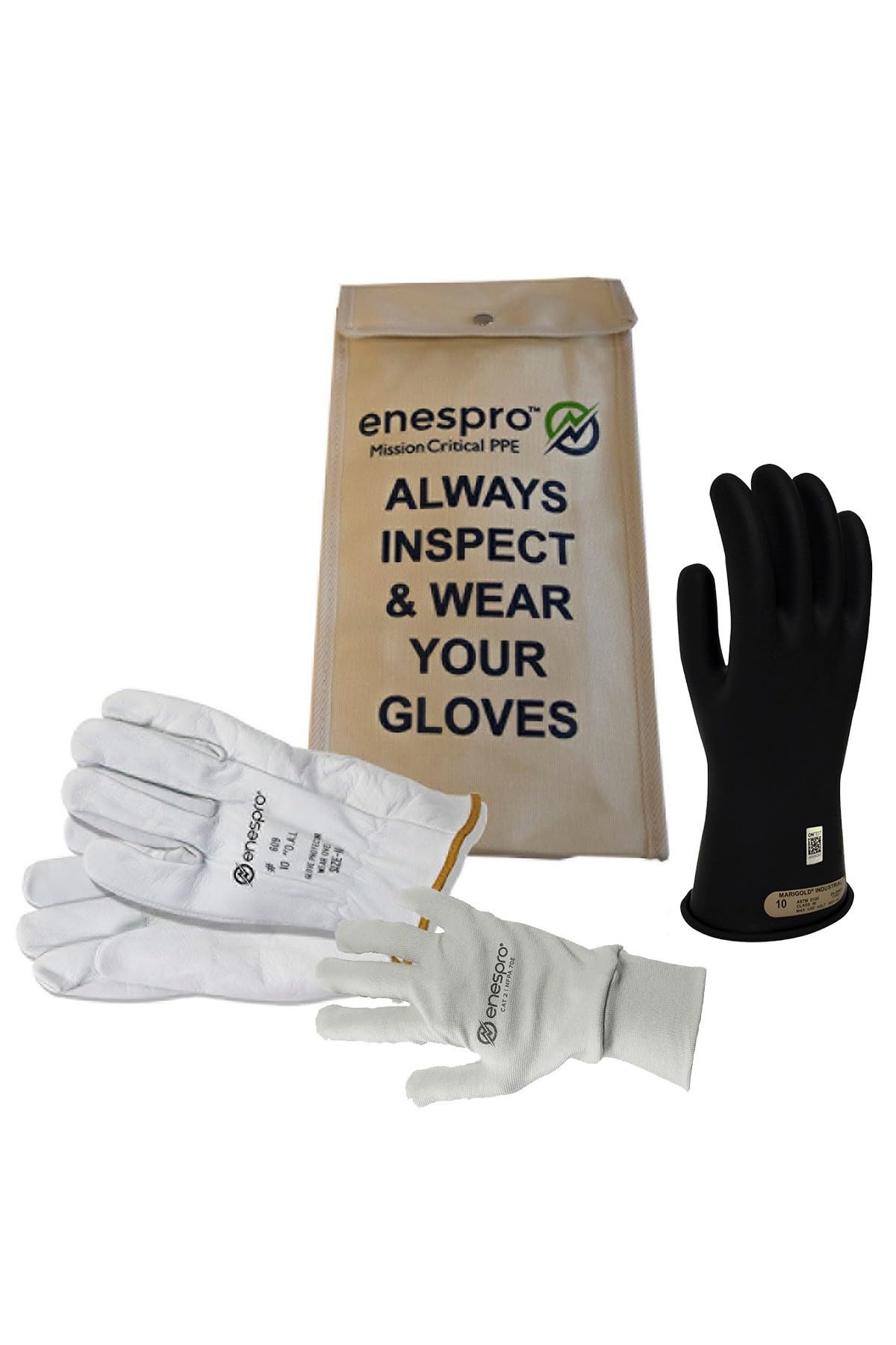 KIT INCLUDES: Pair of 11" Class 00 Rubber Voltage Insulating Gloves; Pair of ArcGuard FR Knit Gloves; Pair of 10" Leather Protectors for gloves; Glove bag for easy storage TESTED: Each pair of rubber voltage insulating gloves has a maximum use voltage of 500V AC/ 750V DC and is newly tested and stamped with test date; Rubber Voltage Insulating Gloves should be worn with leather protectors COMPLIANT: Rubber Voltage Gloves are NFPA 70E-2015 compliant for arc flash; CSA Z462-15 compliant for arc flash (Canada); ANSI/ASTM D120, Class 00, Type 1; Max use voltage 500V AC/750V DC ENHANCED PROTECTION: Ideal for arc flash & general FR applications; Utility Workers; Linemen; Constuction Workers; Power Generation; Electricians; Electrical Cooperatives; Contractors ADDED COMFORT & PROTECTION: ArcGuard 12 Cal FR Knit Gloves can be worn with Rubber Voltage Gloves as a liner for added protection & comfort