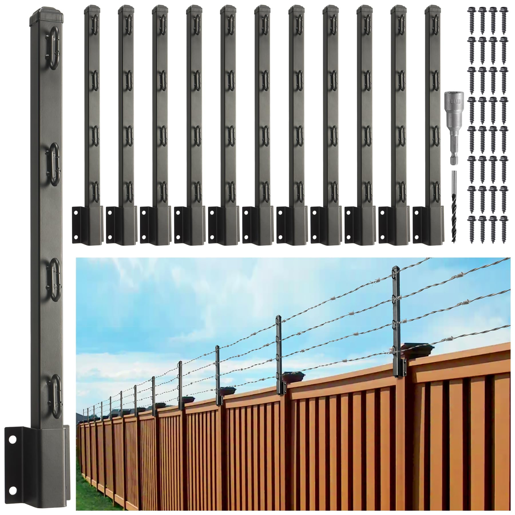 QUALITY DESIGN: Barbed wire extension arms are made of galvanized steel with high temperature powder coated baked enamel finish, which can extend your fence height vertically by 23.5 ". The Wood Fence Post Extender is equipped with four separate runway grommets that allow you to easily snap wire barbed wire/wire light strings/nets into the rings for convenience, safety and speed. WIDE RANGE OF APPLICATIONS: The Fence Post Extender is suitable for wood, concrete wall fences (expansion spiral needs to be replaced - not included), whether you want to increase the height of your fence to protect privacy, stop your pets from jumping and escaping, or hang holiday lights and other festive atmosphere decoration, the extension arm will be the perfect addition. EASY TO INSTALL: The installation of the Fence Post Extender is simple, just put it on the fence that needs to increase the height, drill pre-set holes to screw in the screws, and then snap the iron barbed wire or string lights to be hung into the runway grommet on the post, installation is completed. SET INCLUDES: Set includes all accessories and screws for immediate installation, 12 Fence Post Extensions Brackets; 48 Hexagonal Screws (5/16" Diameter Length/2"); 1 Drill Bit (3/16" Diameter); 1 Socket. Note:This set comes with screws for wooden fence walls. If you install a concrete wall, You need to replace the expansion screws (set is not included) - Recommended expansion screws Φ3/8", Length: 3", Hammer head drill bit Φ1/2". Epcee Fence Post Extender,24" Fence Extension Height