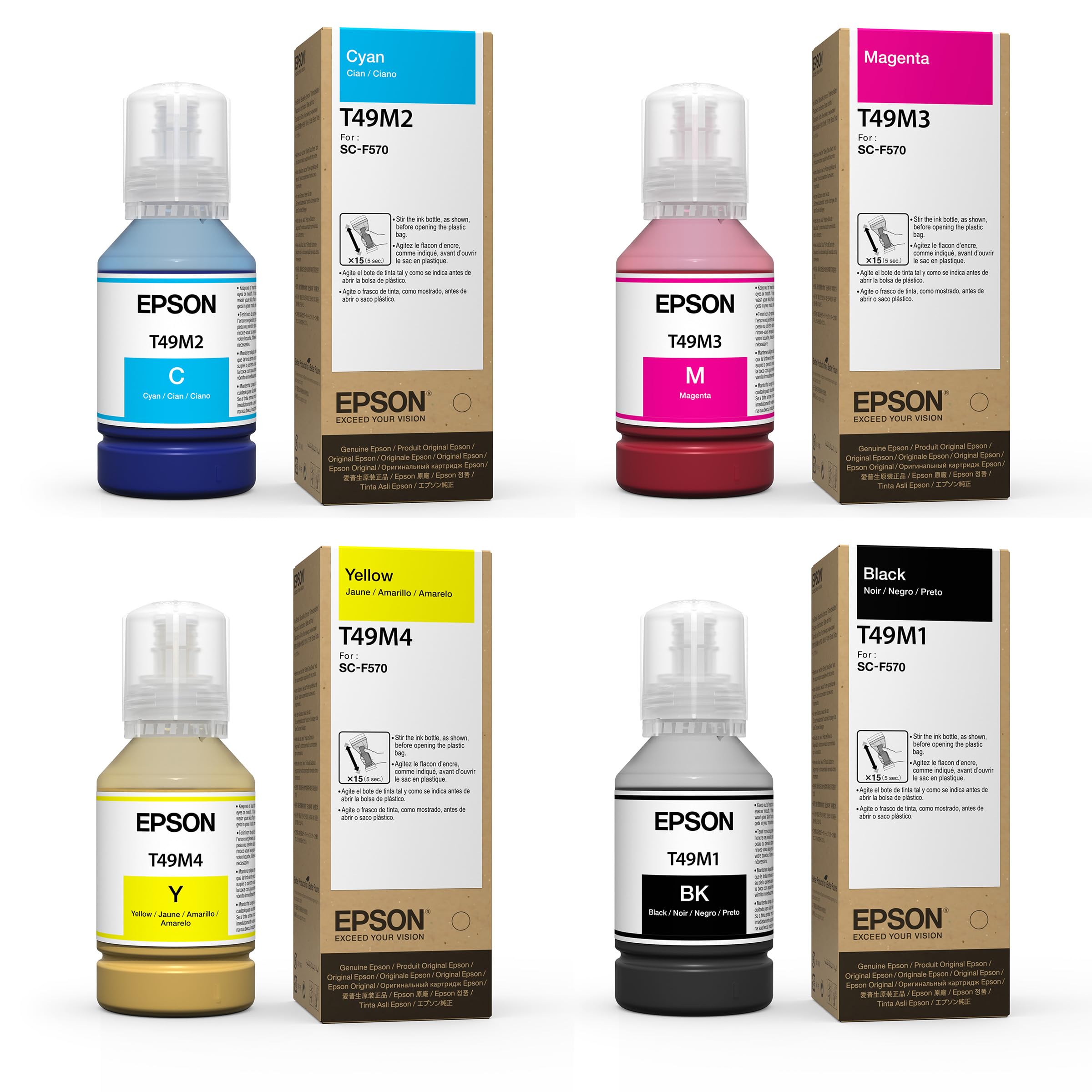 Epson Genuine Dye-Sublimation Ink Refill Bottles nfor Epson Surecolor F570 and F170 Printers. 140m Capacity. T49M Ink (Complete Set)