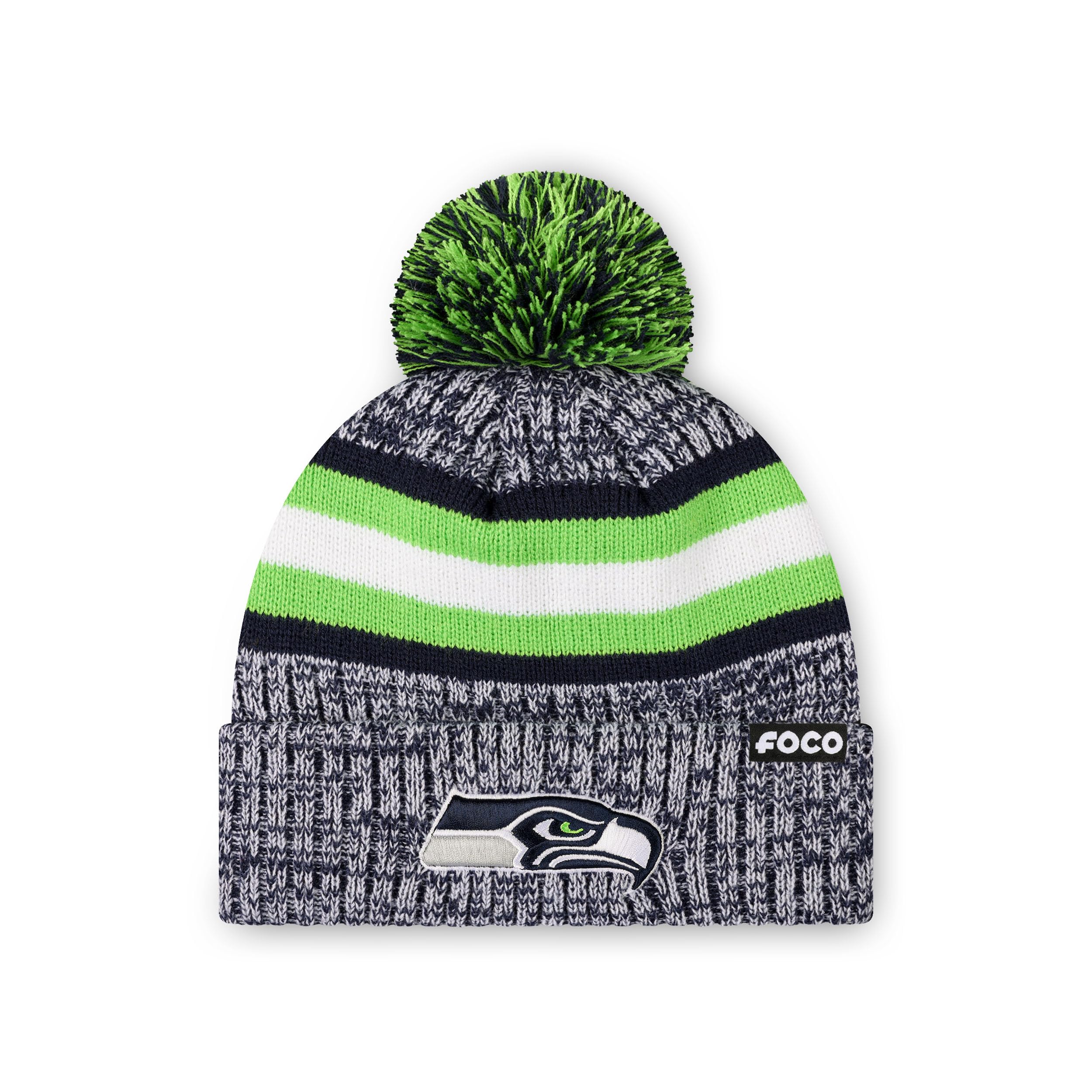 FOCO NFL Unisex-Adult NFL Team Logo Heather Stripe Pom Beanie Hat