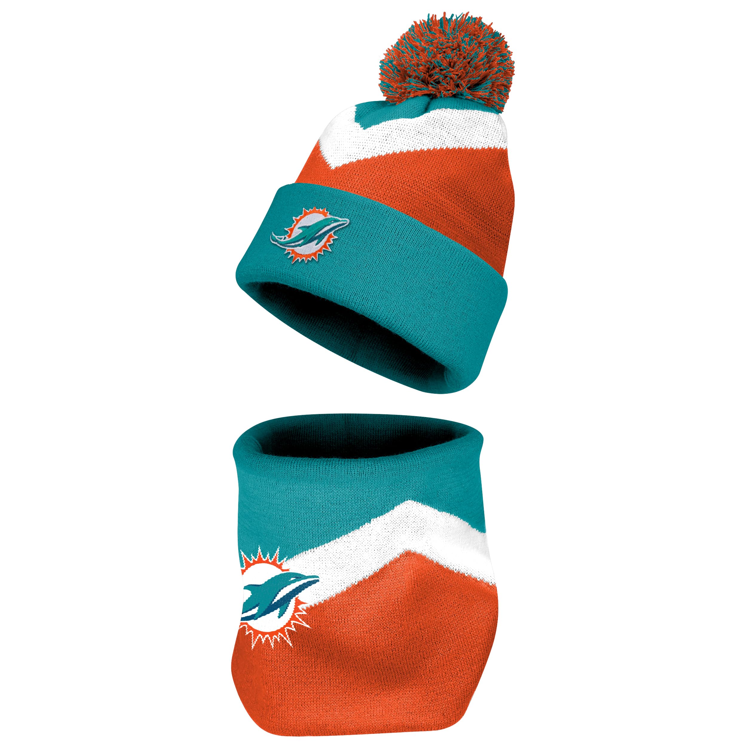 OFFICIALLY LICENSED NFL WINTER SET – Stay warm and show off your Miami Dolphins pride with this 2-piece cold weather accessory set featuring bold team logos and matching color coordination. MATCHING TEAM COLOR DESIGN – Includes a cuffed knit beanie and a neck gaiter, both designed in vibrant Dolphins Aqua accents and official team branding for a unified winter fan look. EMBROIDERED & KNIT-IN TEAM LOGOS – The beanie showcases the embroidered Miami Dolphins primary logo on the front cuff, while the gaiter displays a knit-in team logo around the front panel. SOFT & WARM 100% ACRYLIC CONSTRUCTION – Built from durable, stretchy acrylic that’s lightweight yet warm, making it the ideal combo for game days, commuting, tailgating, or winter outdoor activities. ONE SIZE FITS MOST ADULTS – Designed with stretch to comfortably fit most head and neck sizes. This 2-pack makes a great holiday gift or cold-weather essential for any football fan. FOCO NFL UNISEX-ADULT OFFICIALLY LICENSED PRIMARY LOGO TEAM COLOR 2 PACK NECK WARMER GAITER AND CUFFED KNIT BEANIE HAT SET - Gear up for the cold with true Miami Dolphins pride in the FOCO NFL Unisex-Adult Officially Licensed Primary Logo Team Color Aqua 2 Pack Neck Warmer Gaiter and Cuffed Knit Beanie Hat Set. Designed for fan warmth and winter style, this officially licensed 2-piece set is a must-have for chilly days, tailgates, and daily wear. Each set includes: One cuffed knit beanie in bold team Aqua, embroidered with the iconic Miami Dolphins primary logo on the front. One knit neck warmer gaiter featuring a coordinated team design, with a knit-in Dolphins logo woven across the front for subtle but powerful team representation. Made from 100% acrylic, this cold-weather combo offers warmth without the bulk. The beanie is soft, stretchy, and perfect for layering, while the gaiter helps block wind and chill while repping your squad. Wear them together for full coverage or separately to complete your cold-weather fan look. Ideal for: Game days, Winter walks, Snowy errands, Holiday gifting, Or simply staying warm while showing your team pride. This set is unisex, officially licensed by the NFL, and designed to fit most adults comfortably thanks to the stretchable knit construction. Whether you're cheering from the stands or bundling up for everyday life, the Miami Dolphins Beanie and Neck Gaiter Set by FOCO delivers warmth, comfort, and bold team energy all season long.