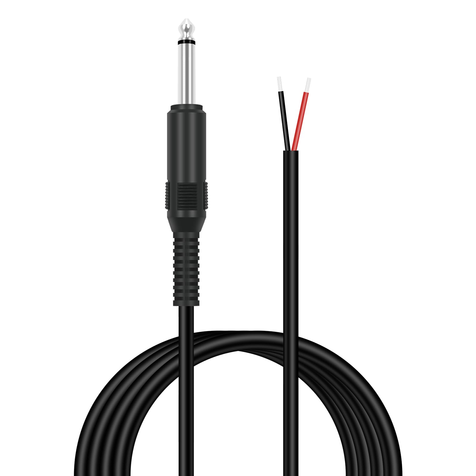 This is speaker wire to 6.35mm 1/4 inch ts mono male plug jack connector adapter, bare wire pigtail replacement repair 6.35mm cable. The 1/4 6.35mm to speaker wire cable is widely used to connect microphone, speaker, amplifier, home theater, Hi-Fi system and Musical Instruments such as electric guitar, AMP, bass, keyboard, mixer, equalizer, organ or drum, and more 6.35mm audio application. 1/4 inch 6.35mm speaker bare wire cable with high-quality copper conductor provide maximum's conductivity and durability, make the audio signal transmission less loss, achieve high quality sound quality. The 6.35mm cable comes with pre-stripped and pre-tinned ends, it's very easy to be soldered and connected. The red wire connect to the mono audio wire; the black wire connect to the ground wire. Package contents: 6ft 6.35mm 1/4 mono male plug jack to bare wire pigtail speaker wire cord cable. This is speaker wire to 6.35mm 1/4 inch ts mono male plug jack connector adapter, bare wire pigtail replacement repair 6.35mm cable.