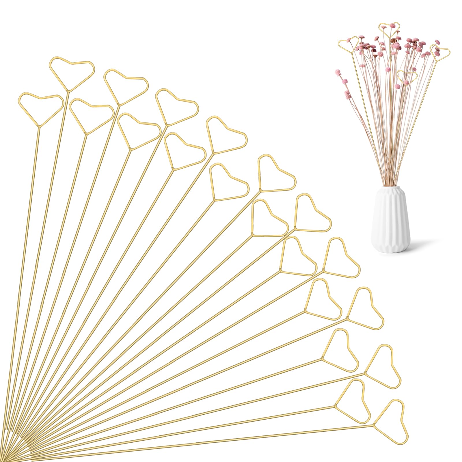 These flower card holder sticks are not only perfect for wedding decorations and bouquets but also serves as a versatile accessory for pictuer, photo frames, cake decorations, food signs, table cards, and more, offering high practicality for a variety of occasions. These gold floral card holder picks crafted from high-quality metal with a meticulous metal sheet process, the card holder ensures durability and an attractive appearance with a smooth, glossy surface that resists fading deformation and breakage. The place card holder with heart shape conveys messages of love and care, making it suitable for expressing affection and adding a romantic touch to various celebrations, enhancing the appeal of the decorations. These photo holder sticks are user-friendly, requiring only to attach the card or photo to the heart shape end and secure the other end into a table or bouquet for a stable display, and it is reusable. These picture holder sticks Total 20 pieces,the Length is 12.59 inches/32cm,the heart shape width is 0.79 inches/2cm, These picture sticks needs of events of different scales.The appropriate length accommodates cards and photos of various sizes.
