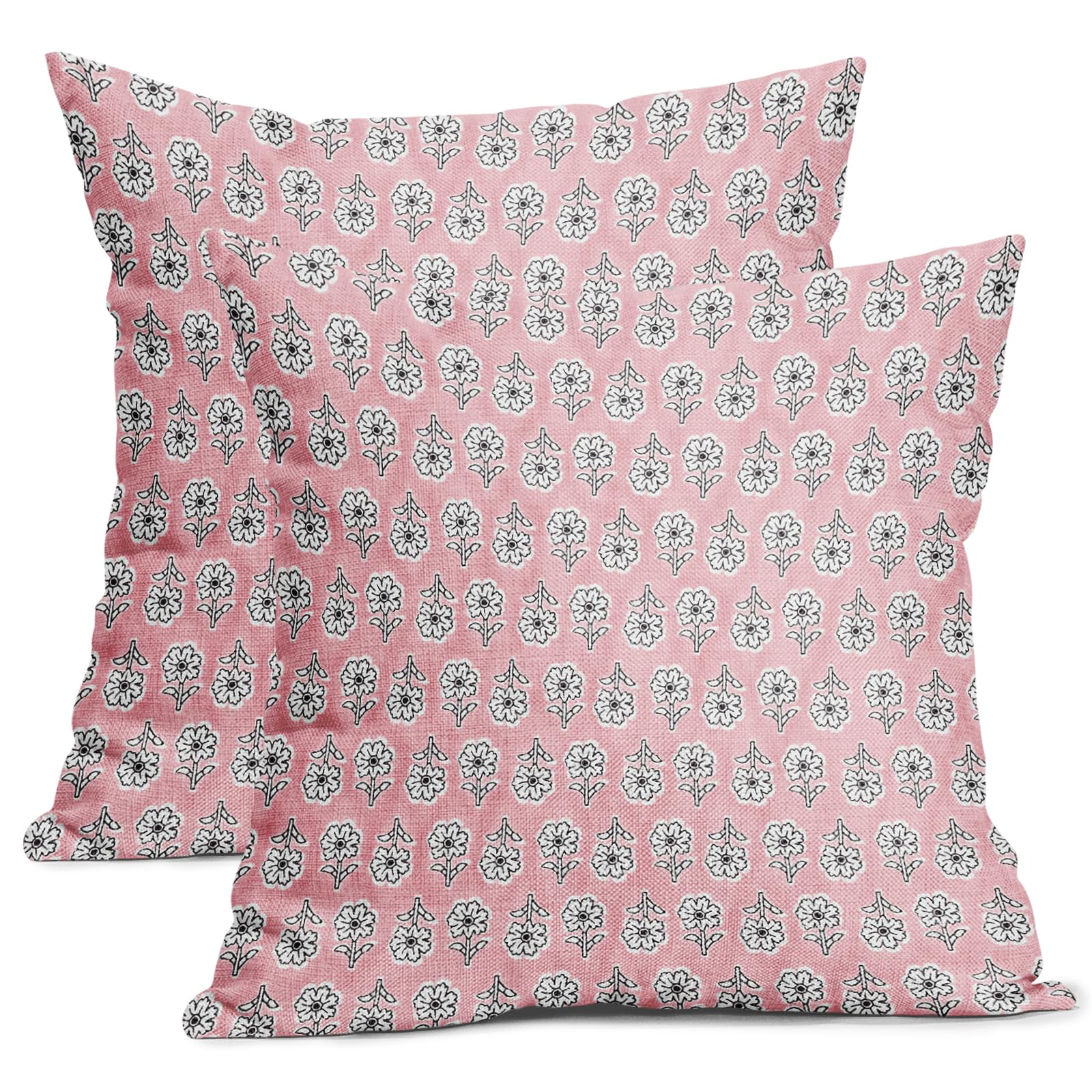 Linen [Package Contents]: The package contains 2 pieces of floral pillow covers 18x18 Inches (45cmX45cm),not including the insert. [DOUBLE-SIDED PRINTING]:The Pink pillow covers are made of a high-quality cotton linen blend that is comfortable and Long-lasting, with no fading or abrasion.The double-sided Pink Flowers Block Print pattern adds cute and unique to this flower throw pillows, which can creates a tranquil and relaxing atmosphere. [Hidden Zipper Design]:The Pink throw pillows have an invisible zipper,nice and tight seams do not detract from the overall aesthetic.The insert can be easily inserted and removed from the blue white bohemian throw pillows. [Home Decorations]: The block print pillow cover are perfect for daily use, and themed party holiday decoration.It can easily be perfectly matched to every corner of the living room, bedroom, dining room, sofa, couch, car, porch, etc. [Easy Care]: We suggest washing these farmhouse pillow covers by hand or machine washing in cold water separately. low-temperature drying and it'll look brand new. These decorative pillow covers are made of a high quality linen material,comfortable and durable,providing you with a natural-friendly sense.