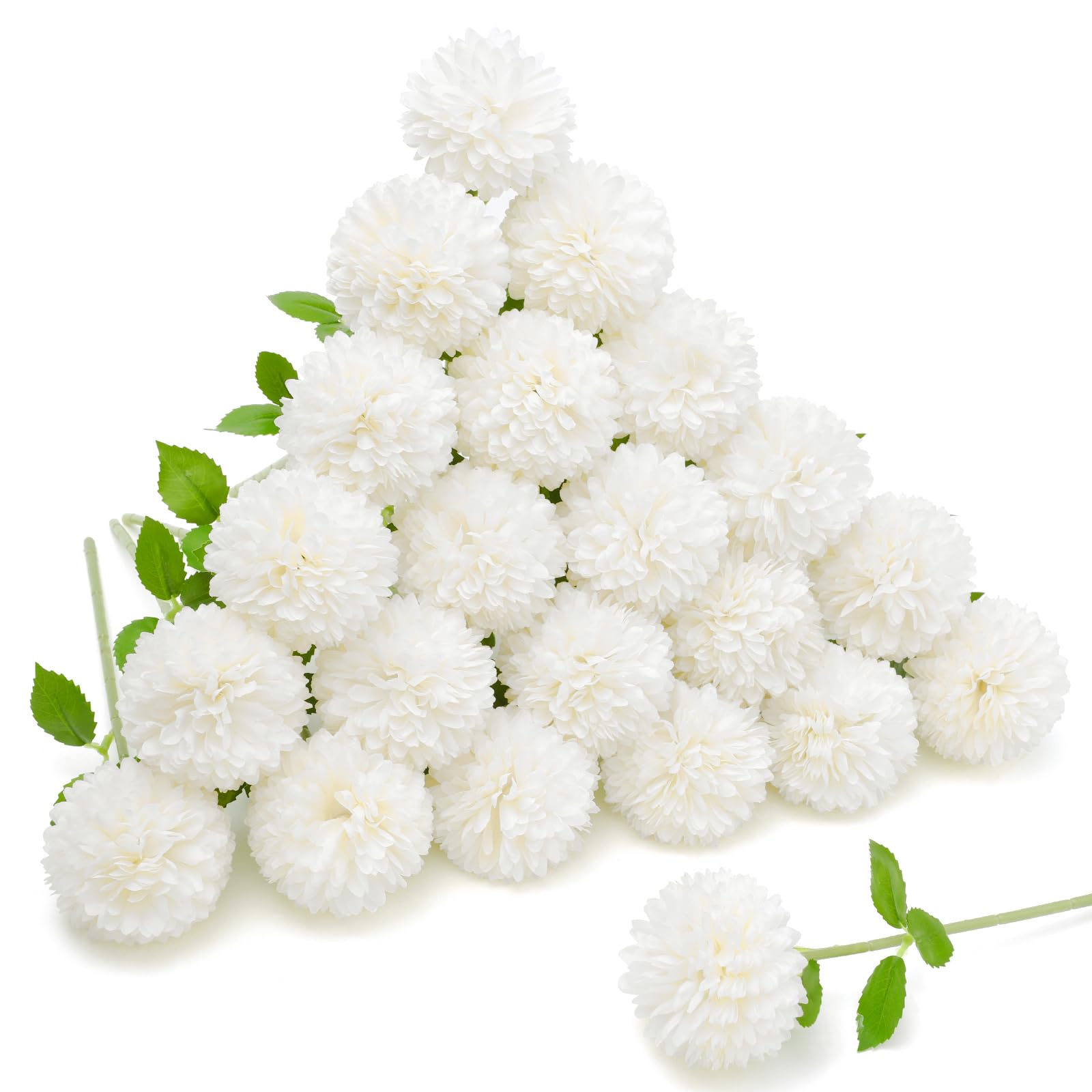 Package: 12pcs Milk white/Champagne/Light blue/Purple/Red chrysanthemum ball flowers.