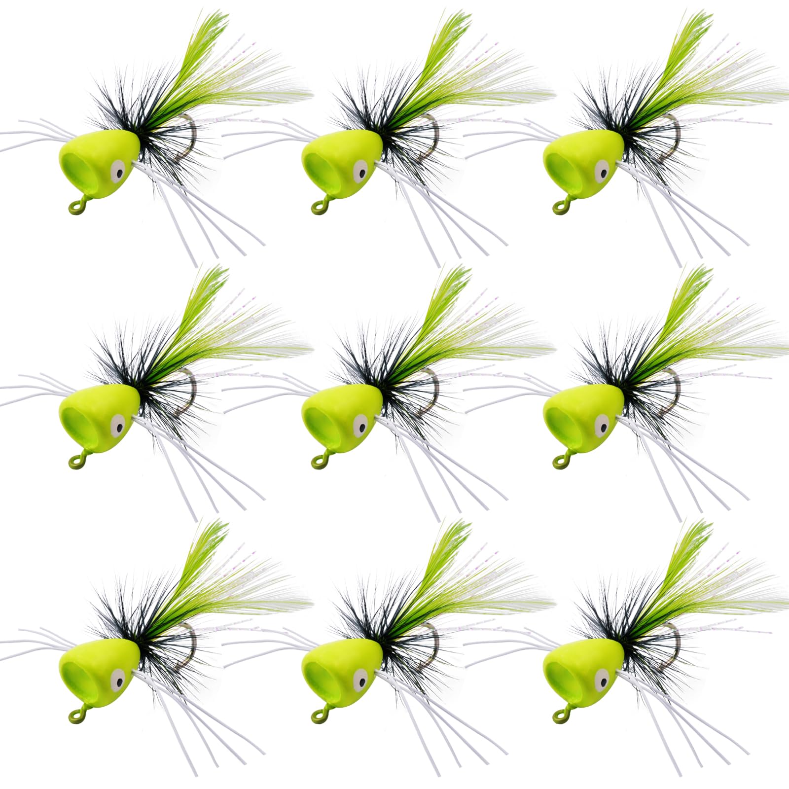 Package Included: You will get 10pcs dry fly popper in total. Enough quantity can meet your daily requirements and you can also share with your families or friends; It is a great fly fishing flies kit for both beginners or experienced anglers. Well Made: The heads of the flies are made of plastic, the feathers are made of PC and the hooks are sharp and powerful, making sure the fishes won't be able to escape, help you catch fish more easily. Various Colors: Our kit bass poppers lures are colorful. The multiple colors can lure fish under different lights and water conditions, which can help you catch fish more easily no matter in clear or muddy water, very helpful for your fishing, making your fishing time without a hitch. Realistic Appearance: The extra strips on both sides of the flies heads are their 'legs', which imitate flies appearances; A slight twitch of the fishing line makes these panfish poppers more lively, just like the real flies resting on the water surface, which can easily draw fish’s attention; These fishing files are suitable for fishing in rivers, lakes, streams and so on. Widely Applicable: The poppers lures contain different kinds of patterns to provide you wide range of use, which are suitable for fishing various fish in different places, like freshwater, lakes, ponds, or rivers, really convenient to fish these fly fishing poppers are nice gifts for those fishing lovers. Fly Fishing Poppers, Fly Fishing Dry Flies Kit Fishing Lures Foam Float Fly Fishing Bass Popper Flies Fishing Lures for Bass Bluegill Sunfish Panfish Trout Salmon Perch Crappie