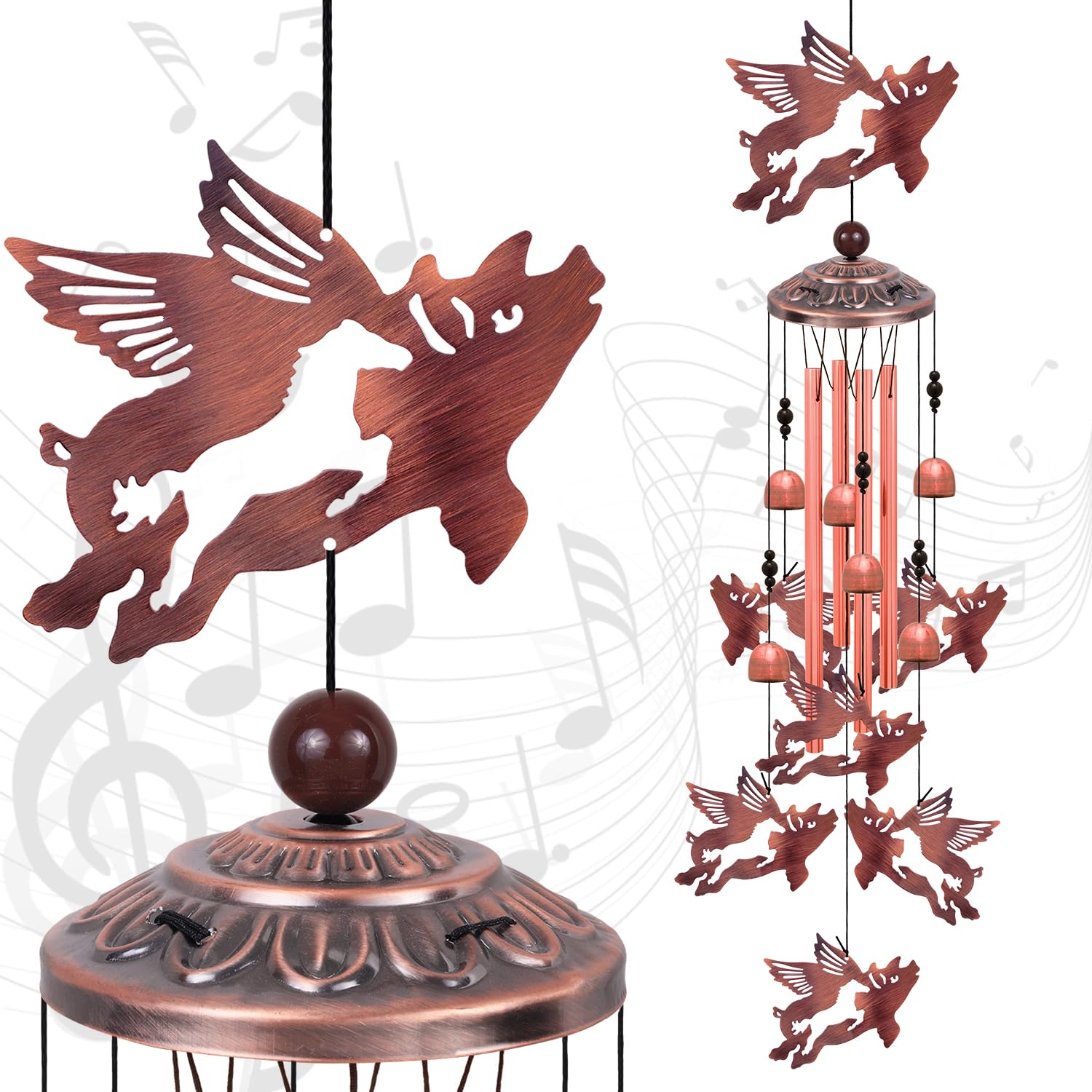 Flying Pigs Wind Chimes is a mascot, a symbol of good luck. When Wind Chimes is blowing, it will bring pleasing and happiness. Hanging pigs decoration, can bless your family safe, healthy and happy. Enjoy the soft relaxing tones of these harmonic wind-chimes. When you want to get rid of daily stress and anxiety, sometimes you need a soft, relaxing wind chime sound. Metal material, the outer layer has anti-corrosion, anti-fading, and will not rust. The pig fly wind bells also has a waterproof function, even if it is used outdoors for a long time, it is not easy to deteriorate. It can be used in the open for a long time, is durable and suitable for all seasons. This fly pigs wind catcher can hang beautifully in your garden, home, patio or office, which will produces wonderful nature's crisp sound under the breeze blows. Add a rustic element to any garden with its red copper finish, bold tones and dramatic look. Eye-catching pig chimes for bars, patios, garden, home, patio, indoor & outdoor decor. It will help you attract wealth and prosperity, success, and all good things. Suitable for decoration on many occasions. If you want to make your garden colorful, these unique pigs flying chimes outdoor decorations will bring you unexpected decorative effects. It can be decorated in many places in any season: gardens, lawns, rooms, aisles, sidewalks, terraces, windows, yards, balconies, etc. You will like this garden wind chimes. Exquisite gifts. Pigs flying wind chimes can be used as decorations for various holidays, and can also be used as gifts for Christmas, gifts for mothers, Mother's Day, anniversaries, weddings, birthdays, Thanksgiving, Valentine's Day, housewarming gifts and other holiday gifts . On special days, let your loved ones receive exquisite wind chimes gifts. Happy gifts for women, grandparents, family, mothers, lovers, friends, neighbors and acquaintances.