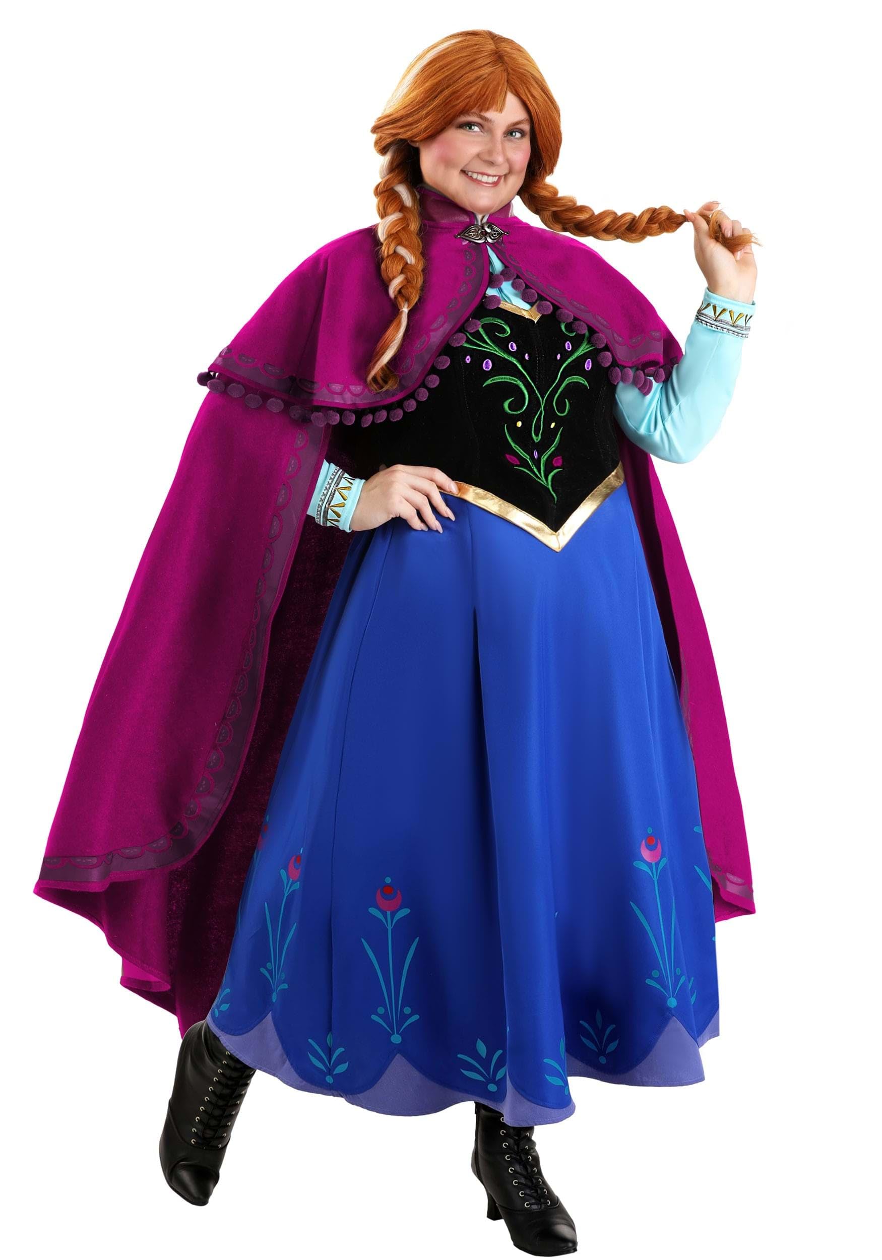 Size: 2X FROZEN COSTUME: Step into the shoes of your favorite character with our plus size adult Anna costume, meticulously crafted to embody Anna's adventurous spirit and distinctive style. Perfect for themed parties or adding a sprinkle of enchantment to your daily life, this carefully crafted ensemble will make you feel like royalty. SOPHISTICATED DESIGN: This costume features a jersey knit pullover top that offers comfort and sophistication, embellished with embroidered cuffs and subtle ruffles. The costume's attention to detail mirrors Anna's iconic look from the film, making this princess costume a favorite for its velvet corset laced and trimmed with gold lame. ROSEMALING DETAIL: This Frozen inspired outfit boasts a detailed rosemaling design on the costume's skirt and corset, a tribute to the traditional Norwegian art form that influenced the film's visual style. This exquisite detailing adds consistency and allure to the outfit, enhancing its authenticity and appeal to both fans of the film and design enthusiasts, making it a perfect choice among plus size Disney costumes for women. HOODED CLOAK: Be ready for any chilly encounters with the included hooded cloak, equipped with a secure clasp closure. The cloak's pom-pom trim and additional embroidery provide a playful yet functional touch, ensuring you're prepared for any adventure, whether it's Halloween or the winter season. Prepare to brave the elements in style with our Frozen Anna Plus Size Costume! Inspired by Anna's chic and practical travel outfit from Disney's Frozen, this ensemble is perfect for any magical adventure you might embark on—trick-or-treating in the chilly October air or simply channeling Anna's determined spirit. This licensed costume starts with a comfortable jersey knit pullover top, detailed with embroidered cuffs and delicate ruffles along the collar and button panel, perfectly capturing Anna's iconic look. Over the top, a velvet corset, laced and trimmed with gold lame, adds a touch of royal elegance, while the embroidered rosemaling design ties it all together. The costume's skirt, with an elastic waistband for a snug fit, also features beautiful rosemaling, adding continuity and charm to the outfit. The costume includes a hooded cloak with a secure clasp closure to ensure you're prepared for any frosty encounters. The cloak's pom-pom trim and additional embroidery add a whimsical yet practical touch, making this outfit both stylish and adventure-ready. Whether you're venturing out for Halloween or simply embracing the season of style, this Anna costume will have you looking and feeling like the bold princess you are! - Shirt - Skirt - Corset - Cape
