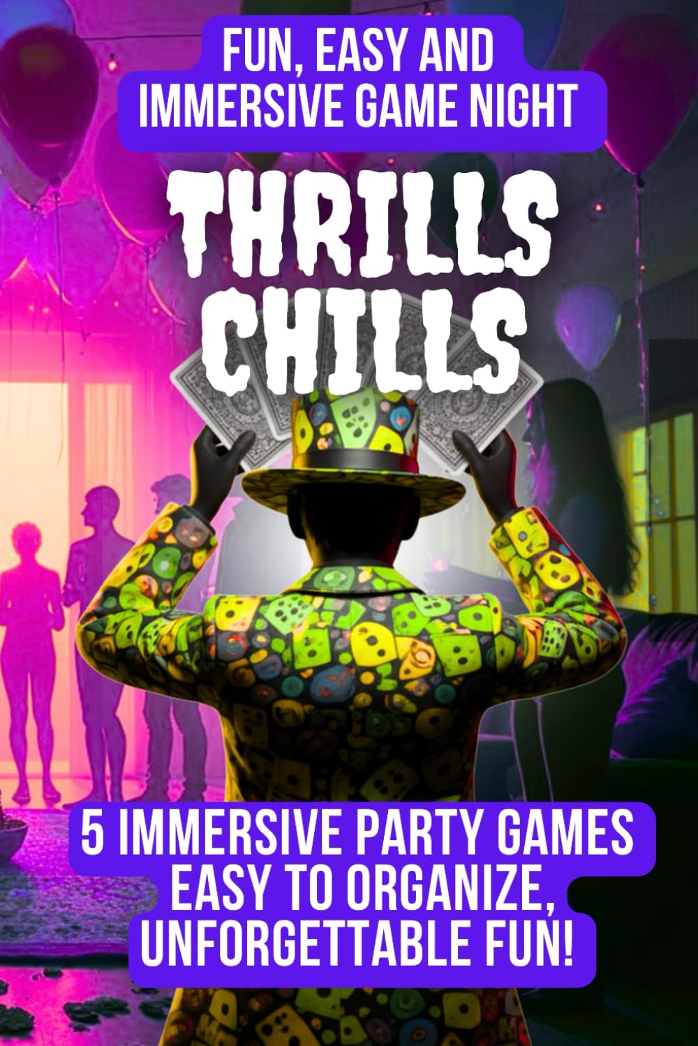 Love Escape Games, Thrills & Chills, Horror Party, and Halloween Night Game ? This book isn’t a classic escape room in a box — but if you love puzzles, mysteries, spooky party games, and a good scare mixed with laughter , you’ll love this. It blends the thrill of murder mystery games and adult party games with the social fun of game nights: secret roles, clues, bluffing, and surprise twists. Looking for a fresh way to host an unforgettable night game ? Whether it’s Halloween , a birthday, New Year’s Eve, a team-building event, or a casual game night with friends, discover 5 immersive horror party games that are easy to host and packed with clues, deception, and dramatic reveals . Each game kicks off with an icebreaker to set the mood, then escalates with secrets, alliances, betrayals, and a thrilling finale. No role-playing experience required — everything is simple, smooth, and fun . All you need is some paper, pencils, and a group ready to laugh, scheme, and play. No complicated rules, no elaborate costumes. The 5 games included From Shadow to Light — The Possessed vs. The Enlightened: reignite the lanterns before midnight to push back the Shadow. Mystical and chilling — perfect for Halloween. - Little Murders Among Friends — An Agatha Christie–style whodunit with secrets, alibis, and bluffing. Great for team building or mystery lovers. - The Great Secret — Guests trapped. Manipulation, suspense, and laughter guaranteed — perfect for New Year's Eve. - Bayou Voodoo — A voodoo ritual threatened by hidden traitors. Folklore, suspicion, and eerie tension — perfect for a spooky Halloween night. - The Inheritance — A wicked will full of puzzles, traps, and family backstabbing. Dark humor and drama — perfect for family gatherings. What’s inside the book Step-by-step Game Master guide — run the evening with zero stress and keep the pace fun. - 100+ Event Cards to add twists, surprises, and keep players on edge. - 150 original puzzles and logic challenges — from easy to brain-melting — to test deduction, memory, and creativity. - Character sheets, missions, and secrets — clear objectives to keep everyone invested. - Simple rules : no mandatory costumes, no heavy props — just paper, pencils, and your guests. How a game night works Each game covers a full evening (≈4 hours) split into three acts: Icebreaker Drinks , Dinner with Secrets , and Betrayal After Dark . Expect quick turns with puzzles , voting , accusations , and dramatic reveals . Players talk, laugh, bluff, and investigate. Perfect for Halloween parties , adult game nights , team events , or any night you want unforgettable memories. Why it’s unique Combines the best of mystery party games , Clue , and escape room–style puzzles — but without heavy rules or costumes. - Guaranteed atmosphere & re-playability : new roles and Event Cards make every playthrough different. - Perfect for escape room fans who love solving puzzles and secrets, but want a more social, party-friendly format. Perfect for: Halloween parties (spooky fun guaranteed) - Game nights with friends (unique and unforgettable) - Team building (cooperation, bluffing, laughter) - New Year’s Eve (twists and big reveals at midnight) - Birthday parties (memorable and different) - Family gatherings (fun for adults, teens, and mixed groups)