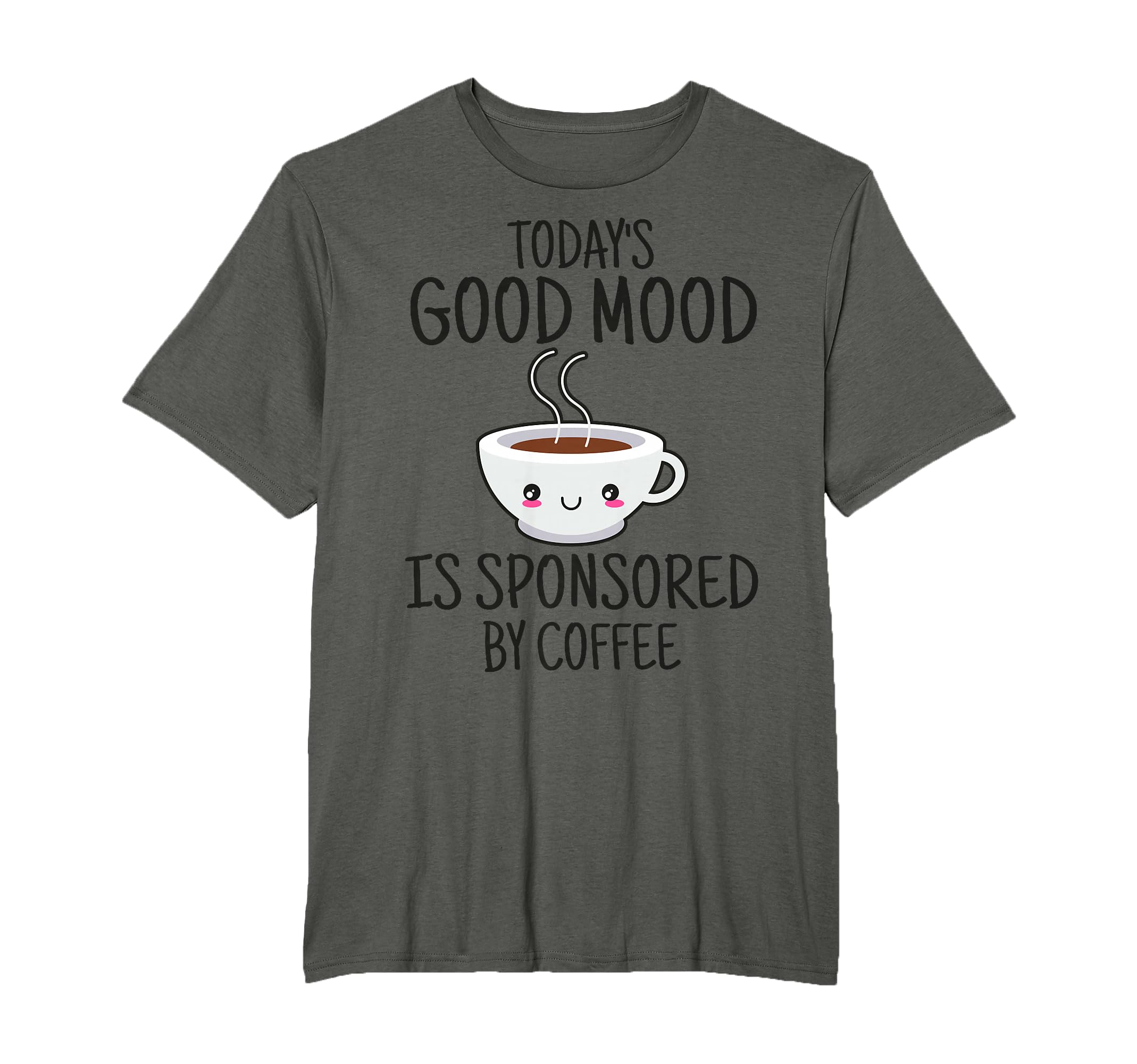 Funny Today's Good Mood Is Sponsored By Coffee Tee for men and women. Great Caffeine Japanese kawaii graphic design with funny coffee reference. Makes a perfect birthday gift idea or Christmas present for barista, caffeine lover, coffee mom, coffee dad. You love coffee and Japanese kawaii art? Grab this great cute Coffee Addict outfit with funny saying. Perfect for a laugh. Great for any who love freshly brewed coffee, cute coffee quotes and fun coffee sayings. Lightweight, Classic fit, Double-needle sleeve and bottom hem