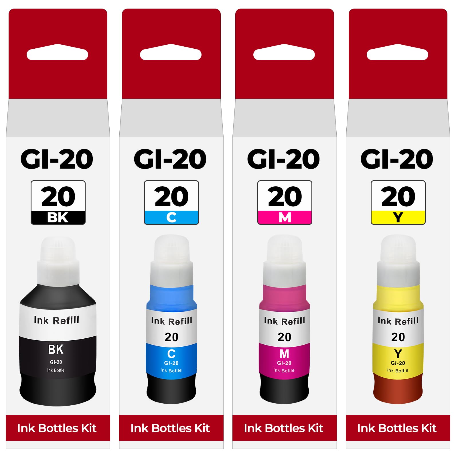Compatible Printer, GI-20 GI20 GI 20 Ink refill bottles compatible with Canon PIXMA G6020 MegaTank Printer, compatible with Canon PIXMA G7020 MegaTank printer, compatible with Canon PIXMA G5020 MegaTank printer, which are replacement for canon G7020 ink refill bottles, replacement for canon G6020 ink refill bottles, replacement for canon G5020 ink refill bottles, replacement for canon G6020 ink G7020 ink G5020 ink GI20 Ink Product Name, compatible for canon 20 ink refill bottles kit, compatible for canon GI-20 GI20 GI 20 ink, compatible for canon GI-20 GI20 GI 20 ink bottles set, compatible for canon 20 ink refill High Yield GI-20 Ink Refill, 8,300 pages per compatible for canon 20 GI-20 ink bottle black, 7,700 pages per compatible GI 20 color cyan magenta yellow ink bottle. (at 5% coverage on A4 paper) GI-20 Ink Combo Pack Packing List, 4 bottles ink refill for canon GI-20 GI20 GI 20 ink include 1 pack 170mL Compatible for Canon GI-20 black noir negro ink refill bottle, 1 pack 70ml Compatible for Canon GI-20 cyan ink refill bottle, 1 pack 70mL Compatible for Canon GI-20 magenta ink refill bottle, 1 pack 70mL Compatible for Canon GI-20 yellow jaune ink refill bottle Tips: The OEM black ink is pigment-based, while our GI-20 ink is dye-based. If your printer still has OEM ink in it, do not refill our black ink, as mixing pigment and dye inks can impact your printer’s performance and print quality. Make sure to clean the printhead before using our ink to protect your printer and ensure the best printing results Compatible Printer, GI-20 GI20 GI 20 Ink refill bottles compatible with PIXMA G6020 MegaTank Printer, compatible with PIXMA G7020 MegaTank printer, compatible with PIXMA G5020 MegaTank printer, which are replacement for G7020 ink refill bottles, replacement for G6020 ink refill bottles, replacement for G5020 ink refill bottles, replacement for G6020 ink G7020 ink G5020 ink GI20 Ink Product Name, compatible for 20 ink refill bottles kit, compatible for GI-20 GI20 GI 20 ink, compatible for GI-20 GI20 GI 20 ink bottles set, compatible for GI20 ink refill High Yield GI-20 Ink Refill, 8,300 pages per compatible for GI20 GI-20 ink bottle black, 7,700 pages per compatible GI 20 color cyan magenta yellow ink bottle. (at 5% coverage on A4 paper) GI-20 Ink Combo Pack Packing List, 4 bottles ink refill for GI-20 GI20 GI 20 ink include 1 pack 170mL Compatible for GI-20 black noir negro ink refill bottle, 1 pack 70ml Compatible for GI-20 cyan ink refill bottle, 1 pack 70mL Compatible for GI-20 magenta ink refill bottle, 1 pack 70mL Compatible for GI-20 yellow jaune ink refill bottle