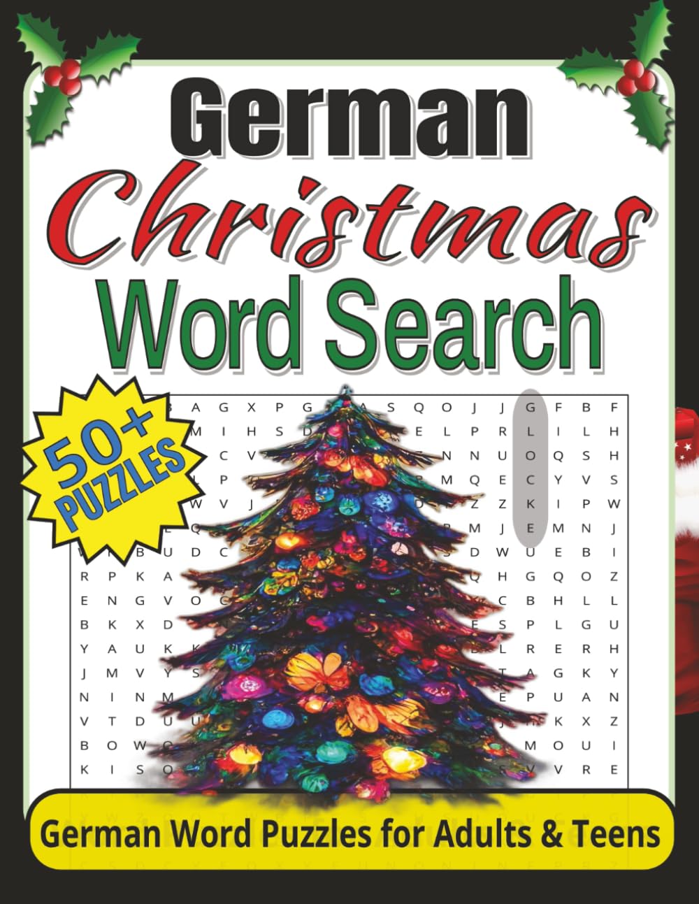 It is the season to be jolly! Get into the holiday spirit with this German-themed Christmas word search book that is full of festive cheer! This fun and engaging puzzle book is packed with German Christmas vocabulary, cozy traditions, and holiday charm. Perfect for anyone who loves word searches, wants to learn or practice German, or simply enjoys Christmas puzzles. Hours of entertainment await! It also makes a wonderful holiday gift or stocking stuffer for friends and family. This puzzle book features: Over 50 German Christmas word search puzzles - Easy-to-read words - Suitable for adults, teens, and older children - Festive German Christmas word lists for every puzzle - Puzzle solutions provided in the back - 8.5 x 11 inches (21.59 x 27.91 cm) The perfect activity for travel, road trips, airplane rides, and waiting times. A great Christmas gift idea or stocking stuffer! Solve puzzles in all directions: up, down, forwards, backwards, and diagonal. (Deutsch) Es ist die fröhliche Weihnachtszeit! Tauchen Sie in die festliche Stimmung ein mit diesem deutschsprachigen Weihnachts-Wortsuchbuch, das voller winterlicher Freude steckt! Dieses unterhaltsame und ansprechende Rätselbuch ist gefüllt mit deutschem Weihnachtsvokabular, gemütlichen Traditionen und festlichem Flair. Perfekt für alle, die Wortsuchrätsel lieben, Deutsch lernen oder üben möchten oder einfach Spaß an Weihnachtsrätseln haben. Stunden voller Rätselspaß sind garantiert! Außerdem eignet es sich hervorragend als Weihnachtsgeschenk oder als kleines Präsent für den Nikolausstiefel. Dieses Rätselbuch bietet: Über 50 deutsche Weihnachts-Wortsuchrätsel - Gut lesbare Wörter - Geeignet für Erwachsene, Jugendliche und ältere Kinder - Festliche deutsche Weihnachtswortlisten für jedes Rätsel - Lösungen im hinteren Teil des Buches - 21.59 x 27.91 cm (8.5 x 11 Zoll) Die perfekte Beschäftigung für Reisen, Autofahrten, Flugreisen oder Wartezeiten. Eine großartige Geschenkidee zu Weihnachten oder als kleines Mitbringsel! Lösen Sie Rätsel in alle Richtungen: nach oben, unten, vorwärts, rückwärts und diagonal.