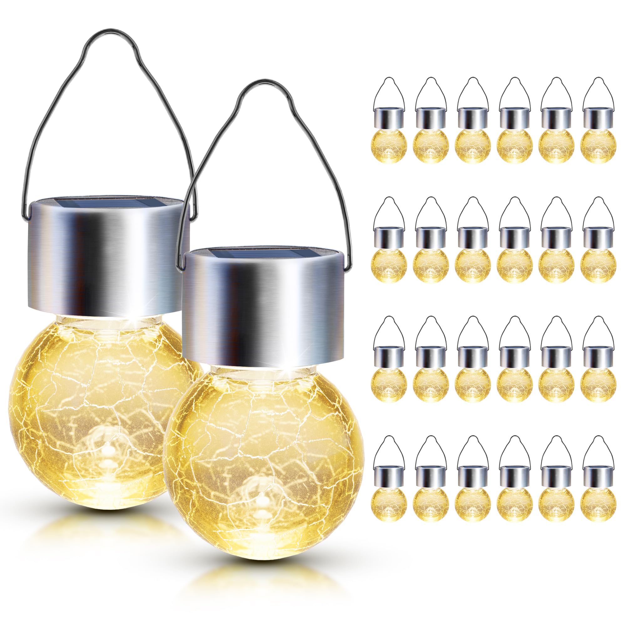 GIGALUMI 24 Pack Solar Outdoor Lights - Hanging Lights for Christmas Decoration - Cracked Glass, Waterproof for Garden, Yard, Fence, Tree (Warm White)