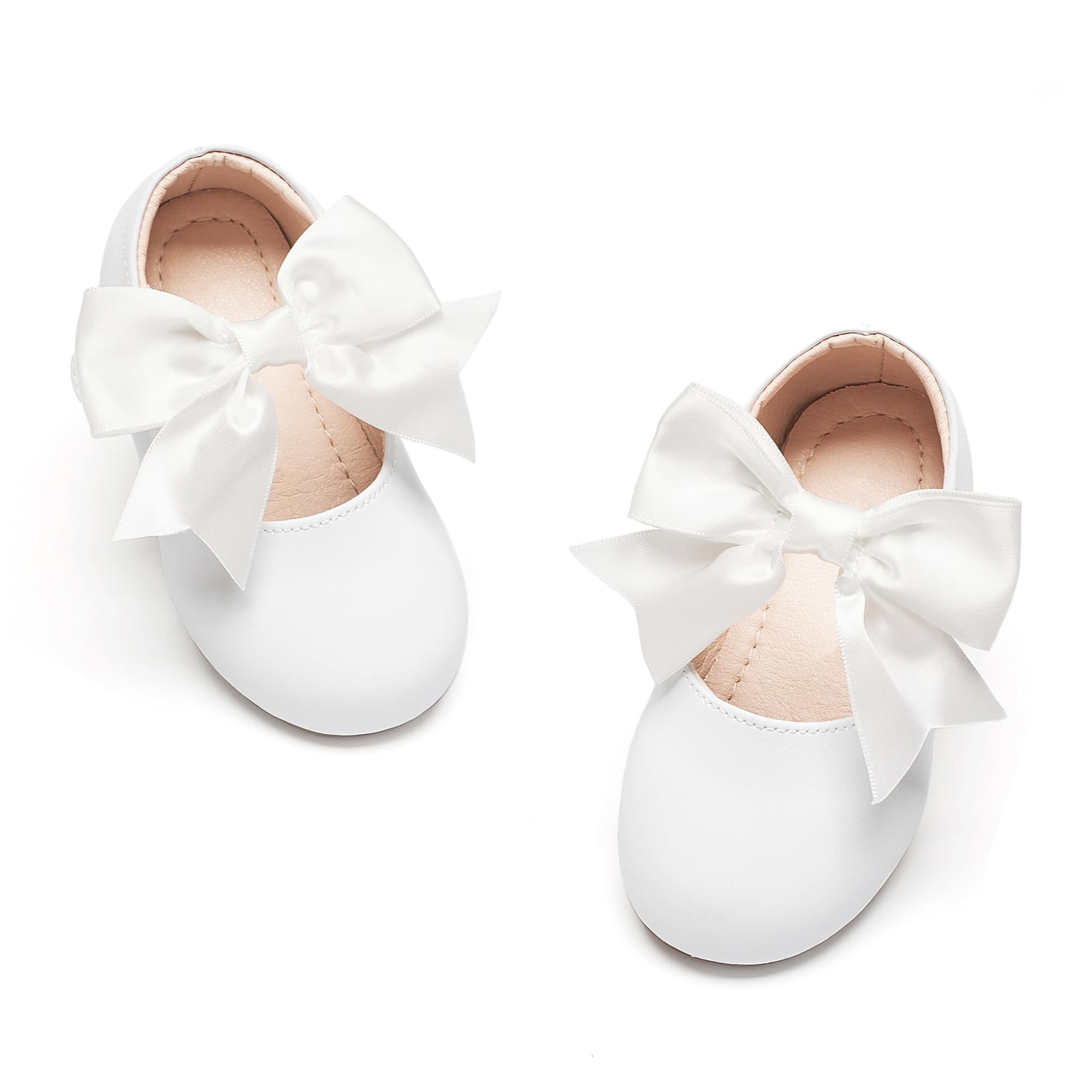 CONVENIENCE:Our girls mary janes shoes with realiable quality are easy to wear. OCCASION -- Ideal toddler girl dress shoes for party, school, performances and travel. Such as wedding flower girl shoes / toddler wedding shoes / easter shoes for toddler girls / girls school shoes /halloween shoes & christmas shoes for girls. ELEGANT DESIGN: Dedicatedly design toddler girls mary jane flat / ballerina flats shoe. Must have as formal shoes for our lovely toddler little girls. MATERIAL:Lightweight Comfortable Rubber Sole Toddler Girls Flat & Non-toxic Materials for Kids. SIZE TIP: Important!!! Please measure your girls' FOOT LENGTH and add 3/8 inches to find the INSOLE LENGTH in OUR SIZE CHART to ensure the possible best fit! ENSURE to check the SIZE CHART for the Right Size! GINFIVE - WE CARE KIDS HEALTHY AND BEAUTY!