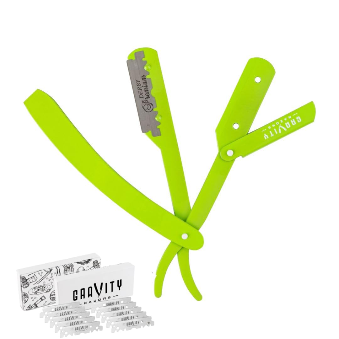 GRAVITY RAZORS Professional Straight Razor Kit – Minimal Exposure, Includes 10 Premium Blades, 0.5mm Exposed, Green