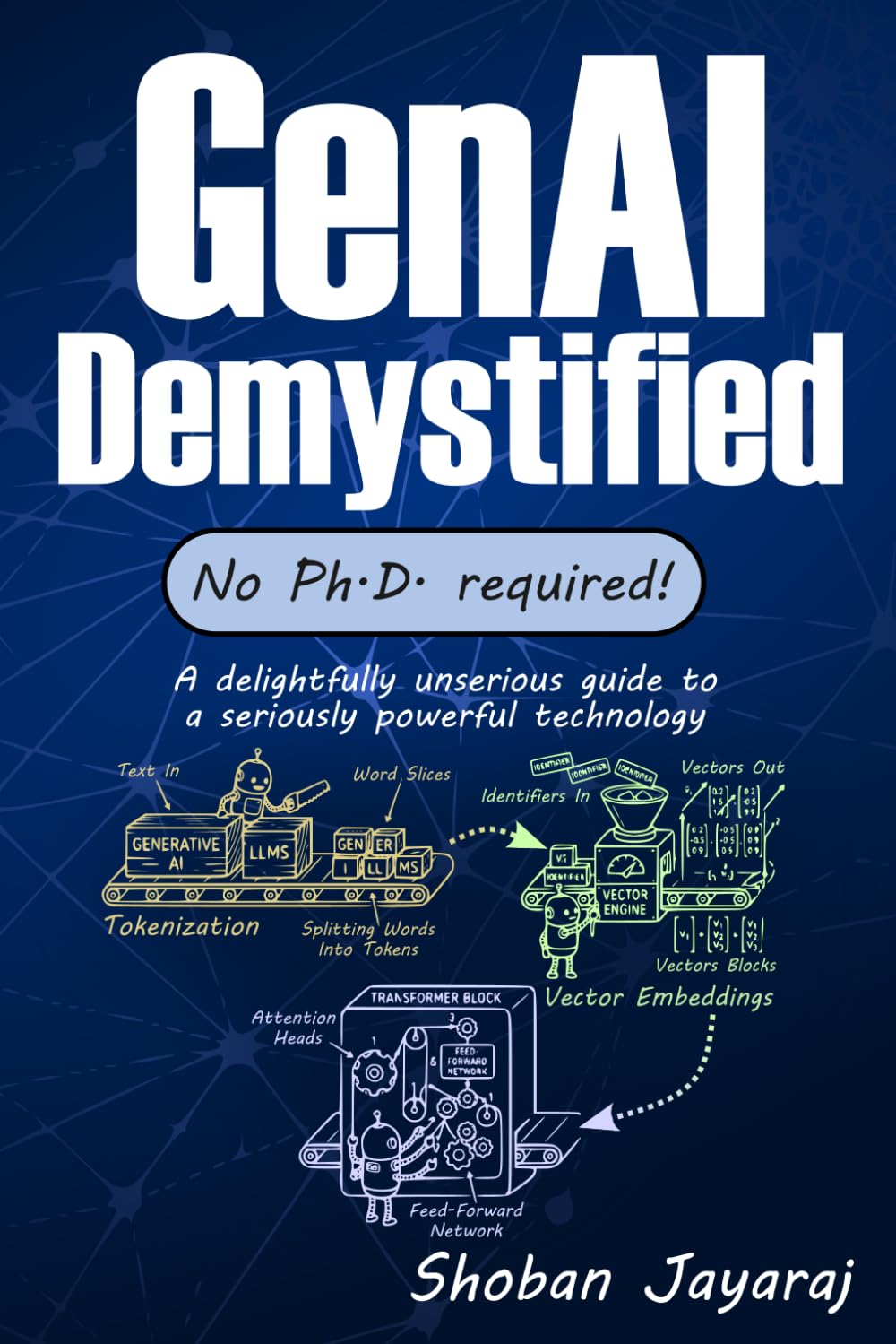 Stop squinting at complex equations and start seeing the big picture. The world of Generative AI is moving at lightning speed, but the books explaining it often fall into two categories: high-level "how-to" guides that never explain the why, or dense academic tomes that drown you in multivariable calculus. GenAI Demystified bridges that gap. Written for developers, curious techies, and lifelong learners, this book offers a gentle but deep dive into the mechanical heart of Large Language Models—without the "math-induced" headaches. What’s Inside? Through a series of intuitive analogies and unique, "Robot Minion" illustrations, you will explore the entire lifecycle of a prompt: The Foundations: How words become numbers through Tokenization and Vectorization. The Engine Room: A peek inside the Transformer Block to see how Attention and Logic actually work. The Modern Stack: Demystifying RAG (Retrieval-Augmented Generation), Knowledge Graphs, and Vector Databases. The Future of Agency: How AI evolves from a simple chatbot into an Agentic System that can use tools and plan ahead. Optimization: Understanding how Fine-Tuning and Quantization make massive models run on smaller hardware. Whether you’re a developer looking to build your first RAG pipeline or a tech enthusiast who wants to understand what’s actually happening behind the chat box, this book provides the grounded foundation you need for the inevitable AI-driven future.