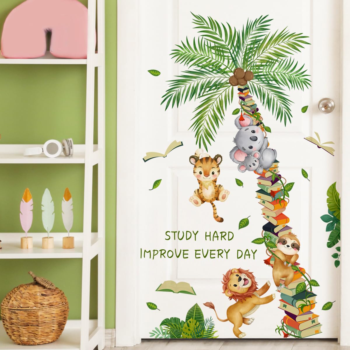 🌳Safe For Family: Cartoon animals wall decals made of eco-friendly vinyl, inks and adhesive, containing non-toxic and are odor free, keeping your families far from chemicals harm, which can be applied for a long time, and bright colors and cute elements are liked by most kids, adding a lively atmosphere for your home. Package including 2 piece of sheets. Each sheet size: 12 x 36inch. 🐯Safari Animals Forest Wall Decoration: Jungle Animals contains a variety of elements suitable for home decoration. A variety of different forest animals around the coconut book tree, green leaves vines fresh, looks cartoonish and fun. study hard inprove every day and add some lively scenery to your child's room. When finished, both you and your child will love it. 🦁Peel and Stick: Green tree animals wall sticker can be disassembled without any tools, is reusable and repositionable; Without spending too much effort and cost, quickly apply your decals and leaving no residue. You can paste them according to the picture instructions or DIY arrangements according to your wishes to create your own style; Wild animals stickers can show your creativity and artistic talents, and can also exercise your hands-on ability. 🐨Widely Application: Large coconut book trees wall decals are very suitable for decorating children's bedrooms, nurseries, playrooms and common areas that children like. It is also very suitable for smooth surfaces such as bathrooms, kitchens, ceramics, tiles, doors and rooms, furniture, plastics, etc. And no matter where you like, if the wall is not very smooth, you can use some double-sided tape to make it stronger. 🦥Exquisite Gift: Animals green tree sticker wallpaper allows you to easily decorate your home and has an attractive visual impact; It is very suitable for festive gifts Family and friends, or as a birthday gift; DIY this project with them and leave good memories. The creative design makes the original exposed space full of vitality, easily changing your interior decoration style and home atmosphere. Our decorative wall stickers are always your ideal gift choice. Big coconut book tree, cartoon cute forest animals learning knowledge, education children need to read hard. More flower, animals and tree wall stickers available at the DTLIFEK store.