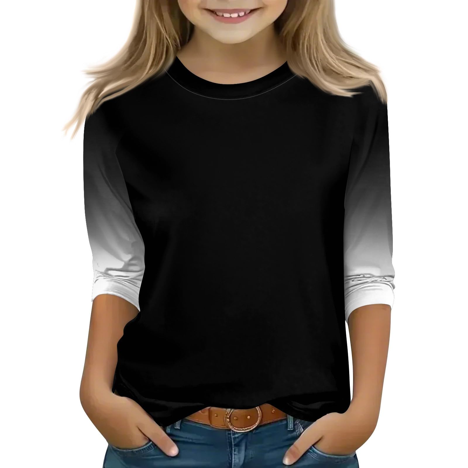 Girls Raglan 3/4 Length Sleeve T Shirts Fashion Fall Crew Neck Cute Tops Y2K Color Block 3/4 Sleeve Boho Outfits 2025