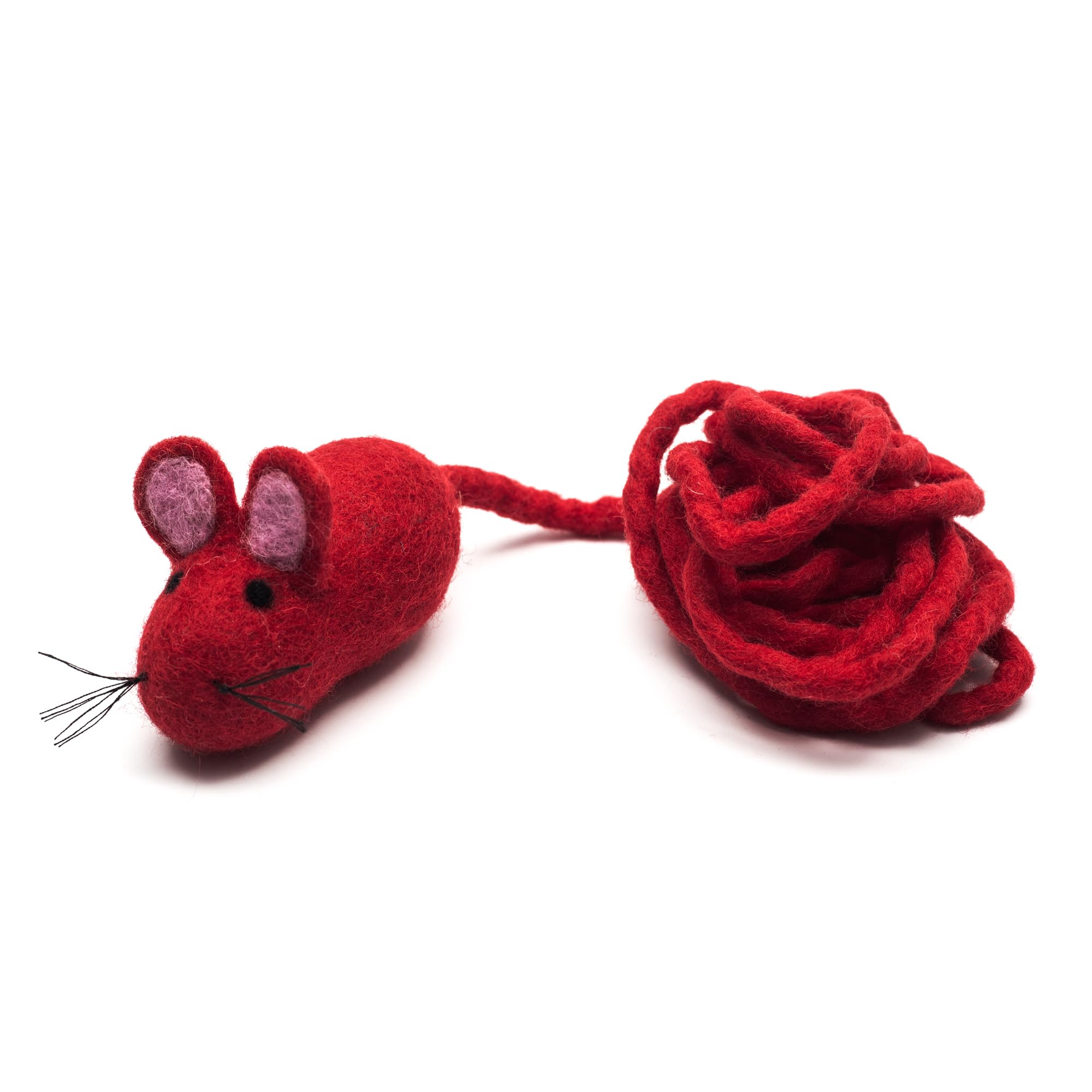 While other felt balls are tinted with artificial dyes and blended with synthetic fabrics, these mouse toys are made only of natural New Zealand woolβno foam or plastic fillers. These kitty toys are firm yet plush, so your pets won't feel any pain when they bite into one. At 4β body and 102β when stretched, the mouse is just the right size for your pets to play with without choking. The smooth texture won't hurt your hands when you play with the toy.