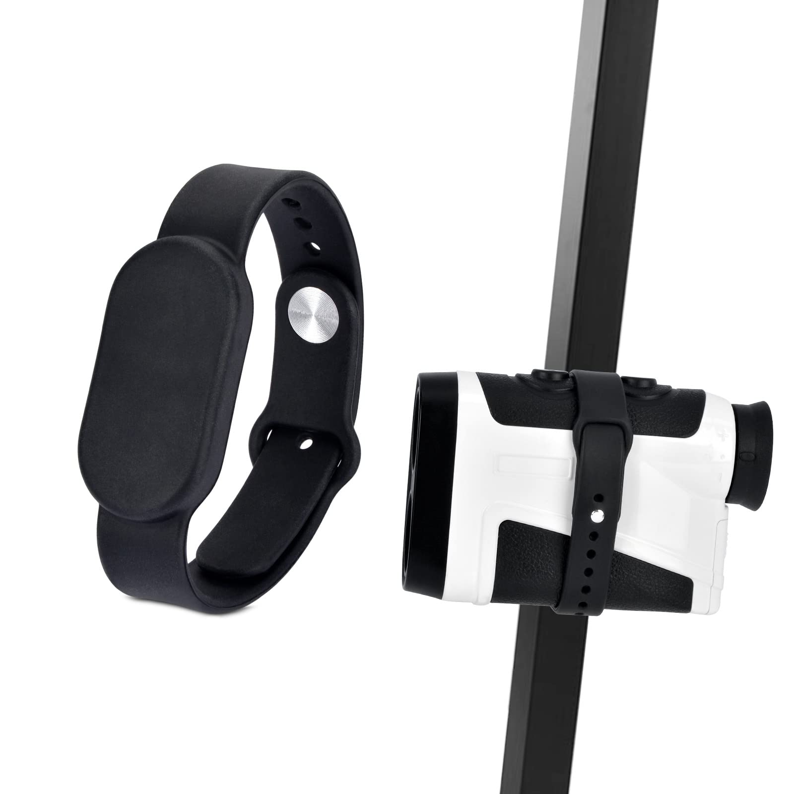 Equipped with a powerful magnet, this range finder magnetic strap can keep your golf rangefinder in place securely onto your golf cart's rails/bar/frame even on bumpy terrain. This golf rangefinder magnetic strap holder boasts a slim design, measuring a mere 0.59 inches in width, and this magnet for rangefinder golf cart provides ample clearance for the buttons on your golf rangefinder, ensuring that they are never obstructed during use. Featuring an adjustable range finder strap, our golf rangefinder magnet holder strap is almost suitable for all golf rangefinders with a circumference of 9 inches or less, like the brand of Bushnell,TecTecTec,Gaialoop,Gogogo,Garmin,Precision Pro,Nikon,Callaway,Leupold,Golf Buddy etc Made of high-quality rubber material, this golf magnetic strap for golf rangefinder is wear-resistant and slip-resistant. The rubber material is also easy to clean - simply wipe it down with water to remove dirt, no need for time-consuming washing and drying. Durable and compact, our golf range finder magnetic cart mount provide heavy-duty strong magnets and great quality. This range finder golf magnetic strap is also perfect as a gift or as a replacement for a lost rangefinder. (We provide one-year warranty of any problem) Golf Range Finder Magnetic Strap Holder, Range Finder Magnet Wrap Mounts for Golf Cart, Adjustable Slim Rangefinder Straps Holder for All Rangefinders, Wear-resistant and Slip-resistant