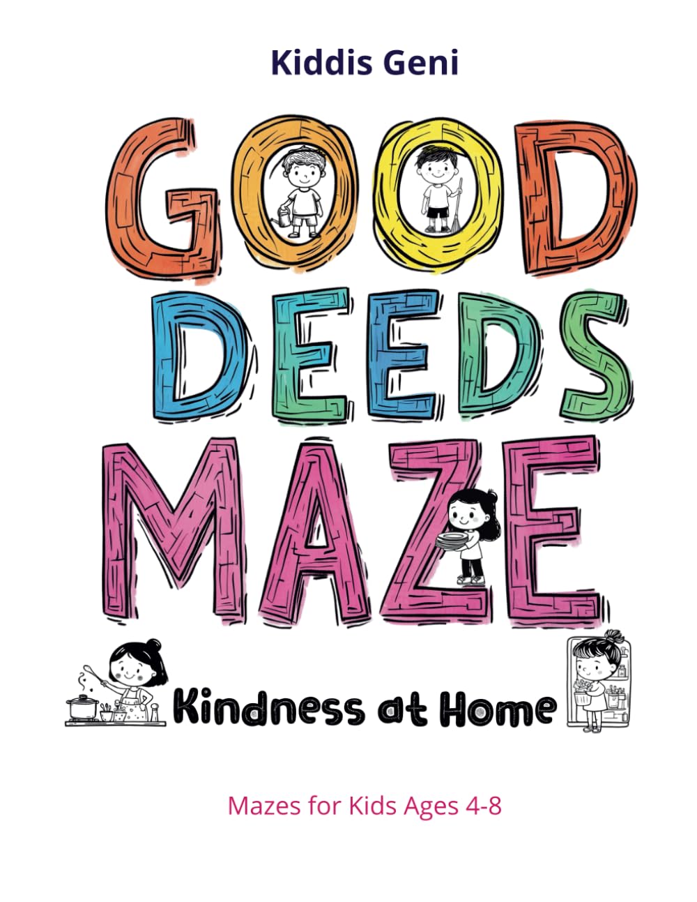 Good Deeds Maze: Kindness at Home β A Fun and Educational Maze Book for Kids (Ages 4-8) Welcome to Good Deeds Maze: Kindness at Home , an interactive activity book that teaches children the importance of helpfulness, respect, and teamwork within their family. Designed for kids ages 4-8 , this book combines fun maze challenges with real-life lessons about being thoughtful, responsible, and kind at home . Each maze presents a situation where the child helps with everyday tasksβ setting the table, feeding a pet, tidying up toys, bringing a snack to a sibling, or helping a parent with groceries . As kids solve the mazes, they actively engage in acts of kindness , strengthening their problem-solving skills while learning valuable family values . Educational and Developmental Benefits: π‘ Encourages Responsibility and Teamwork β Teaches children that small, thoughtful actions make home a happier place for everyone. π§ Develops Problem-Solving Skills β Each maze presents a helpful task that requires logical thinking and decision-making , reinforcing independence and confidence . βοΈ Improves Fine Motor Skills β Guiding characters through each maze strengthens hand-eye coordination and prepares kids for early writing skills . π― Builds Focus and Perseverance β Completing mazes teaches kids to concentrate, follow paths carefully, and overcome small challenges , all while having fun. π Promotes Empathy and Thoughtfulness β Through each good deed, children learn how their actions positively impact family members , fostering compassion and kindness . Perfect for Home, Family Time, and Early Learning This book is ideal for screen-free activities at home , a great tool for teaching family values , and a fun way to motivate kids to be more helpful and responsible . A Simple Yet Meaningful Design Featuring a clean black-and-white format , Good Deeds Maze: Kindness at Home keeps the focus on learning and engagement , while allowing kids to add their own creative touch by coloring the pages . Why Choose Good Deeds Maze: Kindness at Home? β¨ Age-Appropriate Puzzles β Thoughtfully designed real-life kindness scenarios that are relatable for kids ages 4-8 . π Encourages Everyday Acts of Helpfulness β From helping parents, cleaning up, and taking care of pets , kids will see how small actions make a big difference . π Screen-Free, Hands-On Fun β A creative and engaging alternative to digital distractions . π A Thoughtful Gift for Young Helpers β Perfect for birthdays, holidays, or any occasion , offering both fun and important life lessons . π Get your copy today and inspire kindness at home through play!