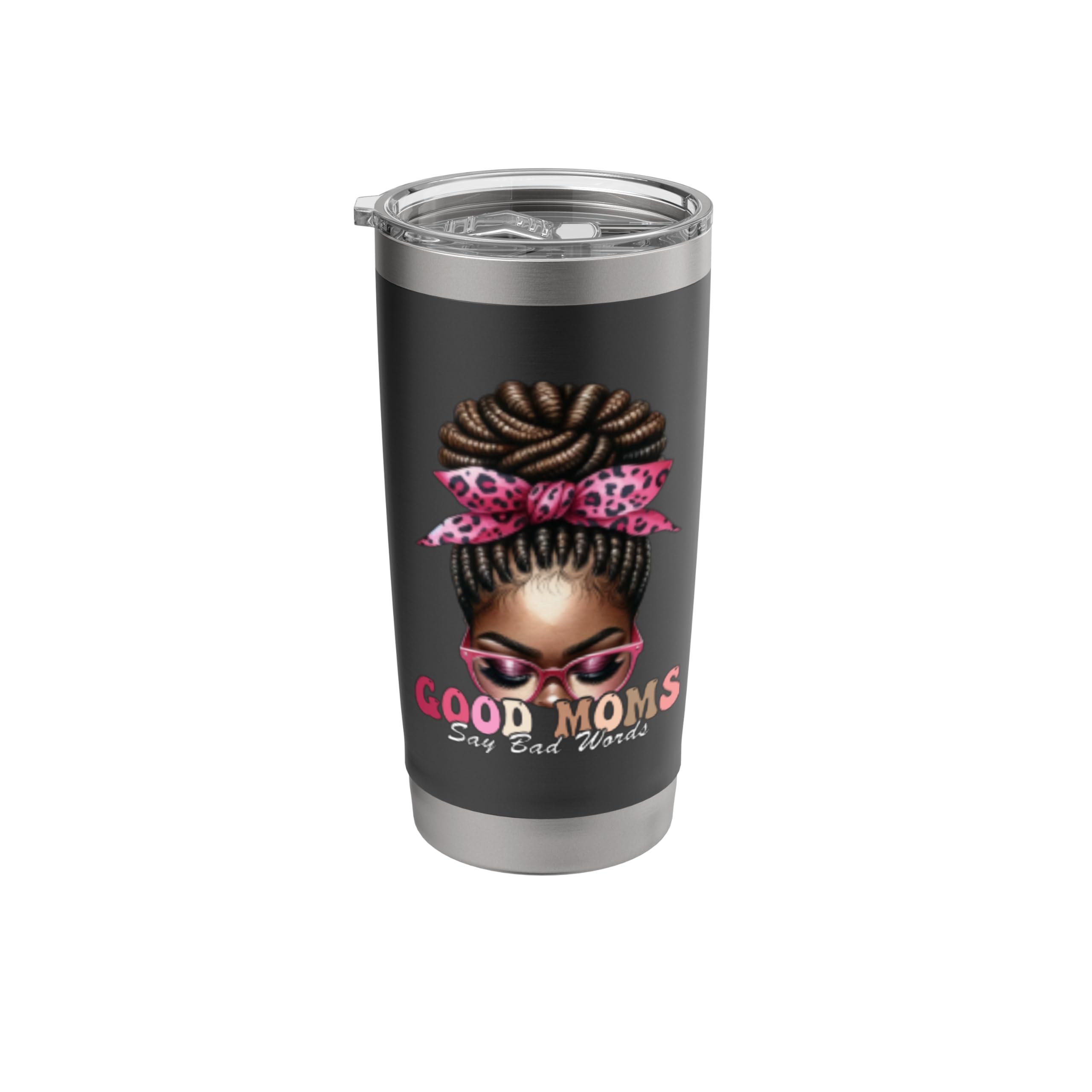 Embrace the lighter side of motherhood with our 'Good Moms Say Bad Words' tee, featuring a stylish messy bun and sunglasses design. It's a humorous nod to the moms who might drop a swear word or two, perfect for making her smile this Mother's Day Ideal for any maternal figure in your life be it your mother, aunt, grandma, or sister this tee is a fantastic gifts idea from family members like kids, nephews, nieces, brothers, and sisters for birthdays, Mother's Day, Christmas, or even retirement Dual wall insulated: keeps beverages hot or cold Stainless Steel, BPA Free Leak proof lid with clear slider