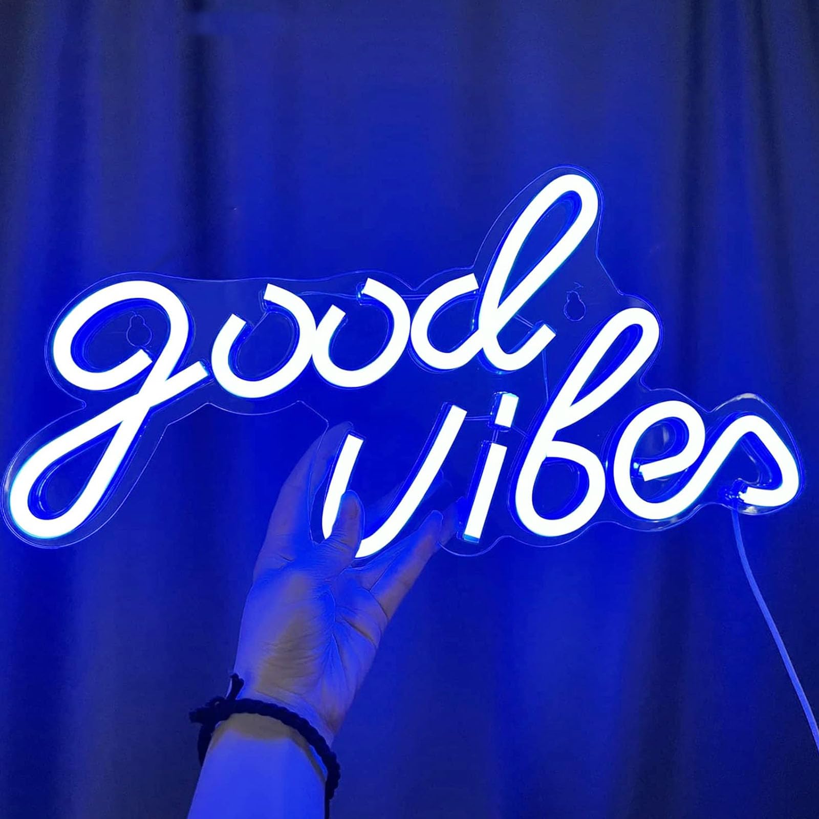 Good Vibes Neon Sign, LED Neon Signs for Wall Decor, Blue Neon Lights for Bedroom & Party Art Decor, USB Powered Bright Neon Light for Lover, Friends