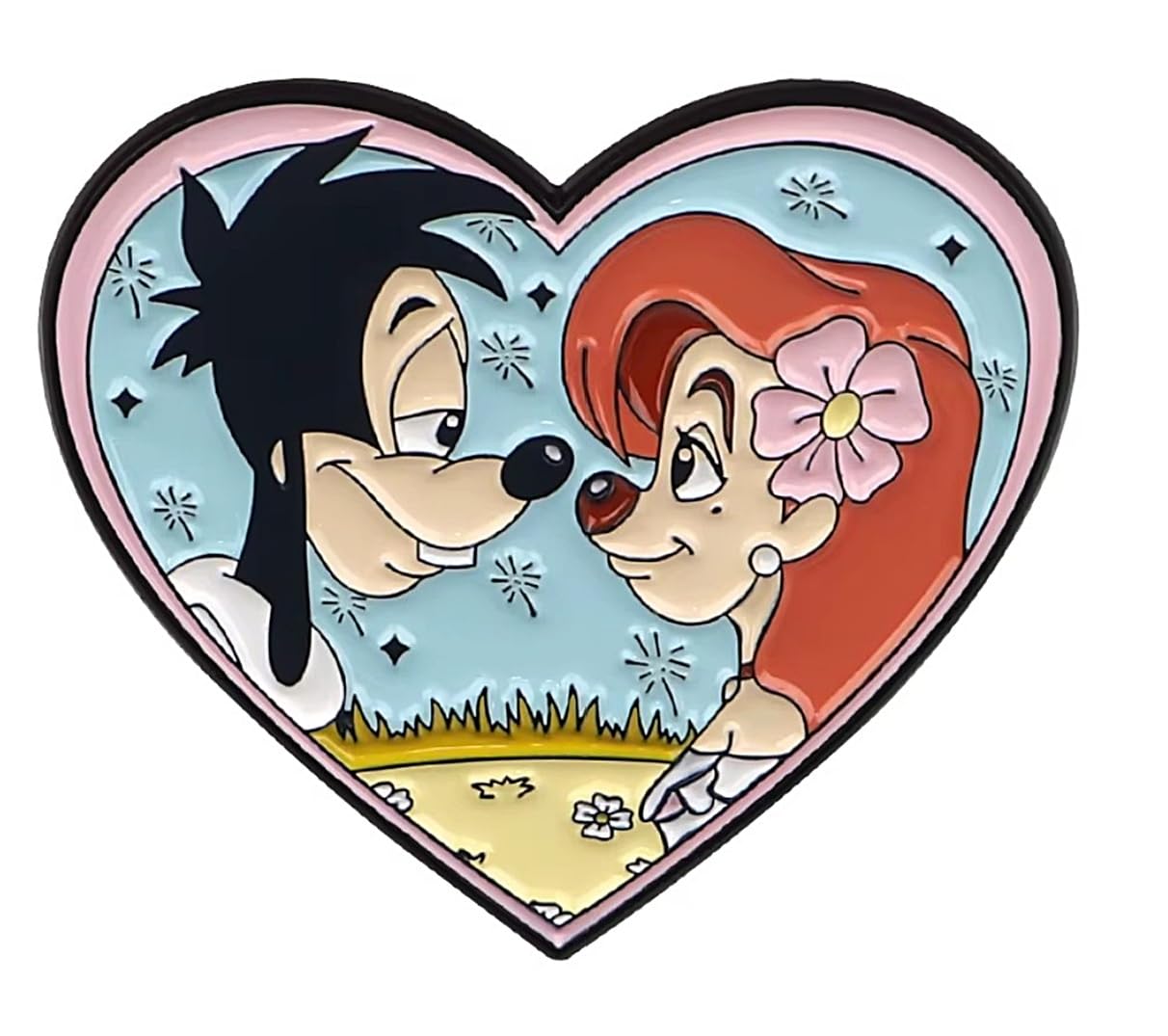 Goofys Son Max and Roxanne Lovers in Heart 1.2 Inches Tall Metal Enamel Pin