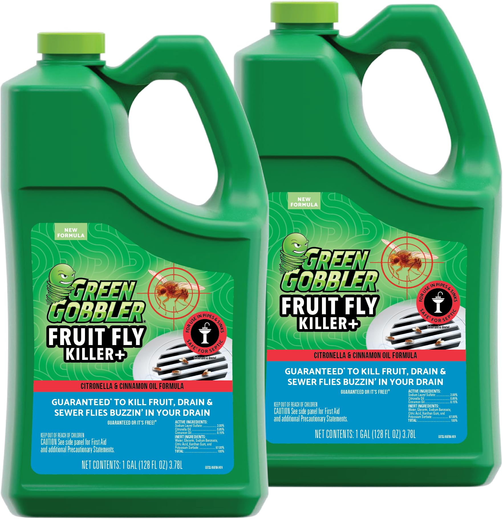KILL FRUIT, DRAIN & SEWER FLIES: Get rid of the fly infestation and get back to enjoying your space. Green Gobbler's thick gel formula clings to pipes to eliminate annoying drain fly infestations. It kills fruit flies, drain flies and sewer flies. PERFECT FOR HOMES & BUSINESSES: Green Gobbler is perfect for homes, hotels, restaurants, bars and anywhere with a fruit, drain, or sewer fly problem. It can treat garbage disposals, floor drains, kitchen sinks, bathrooms, shower drains and more. EASY TO USE: Simply pour 8 ounces into your problem drain. This bottle uses anti-glug technology to help reduce splashing and provides up to eight drain treatments. For best results, we recommend using product at night or during lowest time of use. Repeat daily until desired results are achieved. MADE WITH CITRONELLA & CINNAMON: Our formula contains natural Citronella Oil and Cinnamon Oil to repel flies from your drain. GREEN GOBBLER GUARANTEE: Green Gobbler cares about its customers. We take pride in developing innovative & effective products for your home or business. If for any reason you are unsatisfied, please contact us. We offer a money-back guarantee within 30 days of purchase. When fruit, drain, or sewer flies become a problem, it's time to send in Green Gobbler. Our Fruit Fly Killer+ clings to pipes to eliminate annoying drain fly infestations and uses natural Citronella oil and cinnamon oil to keep them repelled. It kills fruit flies, drain flies and sewer flies so you can get back to enjoying your space. Green Gobbler Fruit Fly Killer+ is perfect for homes, hotels, restaurants, bars and anywhere with a fruit or drain fly problem. It can treat garbage disposals, floor drains, kitchen sinks, bathrooms, shower drains and more. We stand by our products and offer a 30-day money-back guarantee if you're not satisfied with your results.