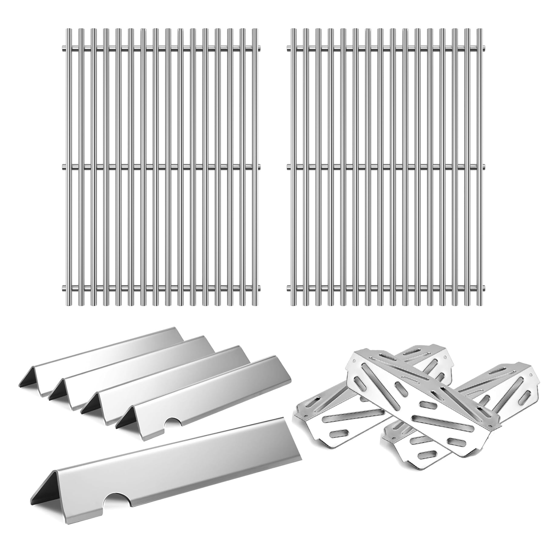 Compatible with Weber Genesis II 300 Series Grills: Fits weber genesis ii 300 series gas grills (model years 2017-current), Weber Genesis ii E-310, Genesis ii E-315, Genesis ii E-325, Genesis ii E-330, Genesis ii E-335, Genesis ii E-345. Genesis ii S-310, Genesis ii s-315, Genesis ii S-325, Genesis ii S-335, Genesis ii S-345. Genesis ii SE-310, Genesis ii SE-315, Genesis ii SE-330, Genesis ii SE-335. Replace for Weber grill accessories GS4 Parts 66805 66095 7599 66032 66795 67095 90235 etc. Compatible with Weber Genesis II LX 300 Series Grills: Fits weber genesis ii 300 series gas grills (model years 2017-current), Weber Genesis ii E-310, Weber Genesis ii E-315, Weber Genesis ii E-325, Weber Genesis ii E-330, Weber Genesis ii E-335, Weber Genesis ii E-345. Weber Genesis ii S-310, Weber Genesis ii s-315, Weber Genesis ii S-325, Weber Genesis ii S-335, Weber Genesis ii S-345. Weber Genesis ii SE-310, Weber Genesis ii SE-315, Weber Genesis ii SE-330, Weber Genesis ii SE-335 etc. Superior Material: Grill replacement parts made of heavy duty 304 stainless steel. Excellent rust resistance and high corrosion resistance, extending the life of your grill. Smooth surface, non-stick oil and easy to clean, just wash with soapy water. Saves you time and gives you more time to enjoy a nice BBQ party with your family and friends. Package and Dimension: Weber Genes is grill accessories including 2 grill grates, 5 flavorizer bars and 3 heat deflectors. 13.25” x 18.75” for each grate, 26.5” x 18.75” in total cooking griddle. 17.125" L×3" W for each flavorizer bar. 12.5" L x 4.24"W for each heat deflector. Easy to Install & Care: A few minutes install to your grill. Smooth surface, non-stick oil and easy to care. Saves you time and gives you more time to enjoy a nice BBQ party with your family and friends.