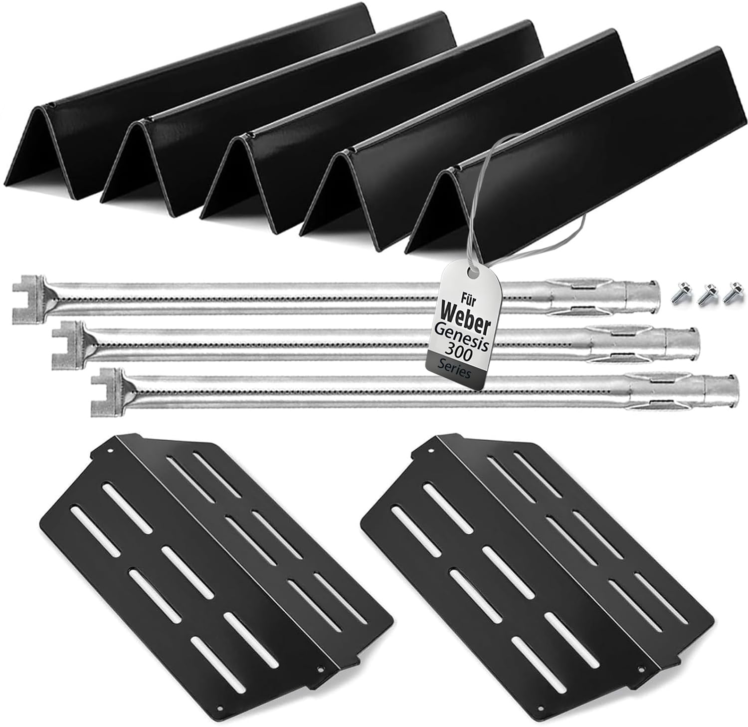 【UPGRADED THICKER AND HEAVIER THAN OTHERS】 You will get the weber genesis grill parts that are made of solid porcelain steel. Weber heat deflector and weber genesis flavorizer bars heavy duty and more durable than others. retaining and transferring heat. distributes heat more evenly than other materials, long lasting. 【DIMENSIONS AND MATERIALS】 3 Burners:17 1/2 inch L * 2 1/4 inch W,13 1/4 (L) x 8 3/4 (W) inches for each porcelain steel weber genesis heat deflectors. 17 1/2 (L) X 2 1/4 (W) X 2 3/8 (H) inches for each porcelain steel weber flavorizer bars. weber genesis 310 replacement parts. 【16GA THICKNESS】Thickness is 16GA, more thicker than other 17GA-20GA, which will last much longer and provides better protection for burners 【HEAT EVENLY】The flavorizer bars for Weber Genesis 300 series prevent food directly exposure to flame, have a good protection for your burner and make your food more evenly heated. Porcelain Steel flavorizer bars create delicious barbecue flavor 【FITS WEBER GENESIS 300 SERIES GRILL PARTS】 Fits weber genesis 300 series grills with front mounted control knob (model years 2011-2016), Including Weber Genesis E-310, Weber Genesis E-320, Weber Genesis E-330, Weber Genesis S-310, Weber Genesis S-320, Weber Genesis S-330, Weber Genesis EP-310, Weber Genesis EP-320, Weber Genesis EP-330, Weber Genesis ESP-310, Weber Genesis ESP-320, Weber Genesis ESP-330, Weber Genesis CEP-310, Weber Genesis CEP-320, Weber Genesis CEP-330 and more. 【COMPATIBLE WITH WEBER GRILL PARTS ORIGINAL PART NUMBER】 Weber 7620, 7621, 56514, 7622, 65505, 62756 and more. weber 7621 flavorizer bars, weber 65505, weber 7620, weber 7620 flavorizer bars, weber heat deflector 65505, weber 62756, weber 7622. weber genesis e310, weber genesis e-310, weber genesis e-310 parts, weber genesis e-330 grill parts, weber genesis accessories, weber genesis 330, weber genesis e330 parts Detailed description