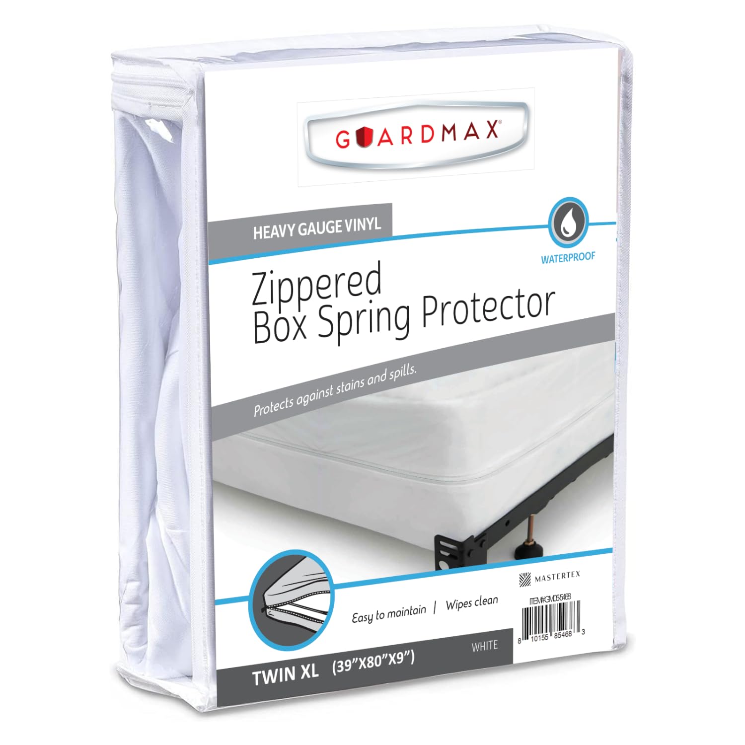 Guardmax Heavy Duty Vinyl Box Spring Cover - Twin XL Size Waterproof Breathable Zippered Box Spring Encasement - 6 Side Absorbent Boxspring Protects
