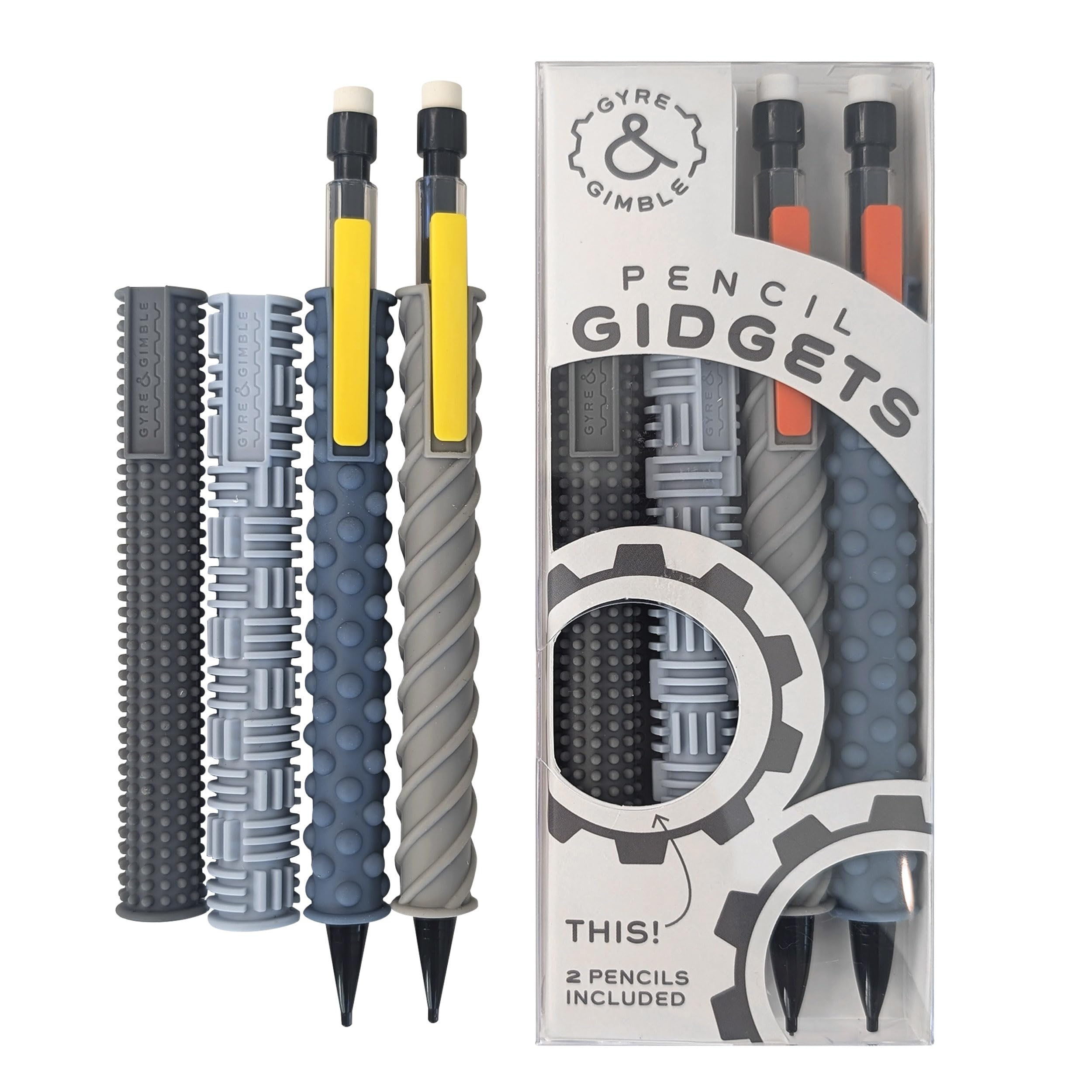 MECHANICAL PENCIL TRANSFORMATION: Our gidgets slide effortlessly onto most mechanical pencils and pens, providing a comfortable, satisfying grip and sensory stress relief. *Does not fit on wooden pencils. FOCUS TOOL: Research shows that fidget tools may help manage ADHD, autism, SPD, anxiety, and dysgraphia. Unlike other fidgets that are noisy or distracting, this fidget provides tactile input for quiet and discreet stimming. Created for special education (SPED) students, but no 504 or IEP accommodations required for use! DURABLE SILICONE: Made from premium, food-grade silicone to ensure flexibility and durability. Super easy to clean and strong enough to endure daily use for the entire school year. *Not intended as a chew toy. TEACHER APPROVED: Perfect teacher gift to stock up your classroom for back-to-school. A favorite prize for rewards and treasure boxes. ADAPTIVE USES: Great writing tool for fine motor skill accommodations. Full-length, soft, compressible texture provides a cushion for small or stiff hands. Gyre & Gimble Pencil Gidgets– Gray/Blues